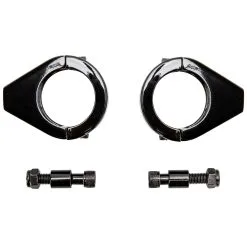 The turn signal fork clamp mounts allow you to move your stock turn signals onto the fork tubes for a cleaner look, and still keep you legal. These clamp on to any 39mm fork tubes which are commonly found on many motorcycles such as narrow glide front ends on Harley-Davidson Sportster and some FX models. Black, die-cast construction. Sold in pairs with necessary hardware.