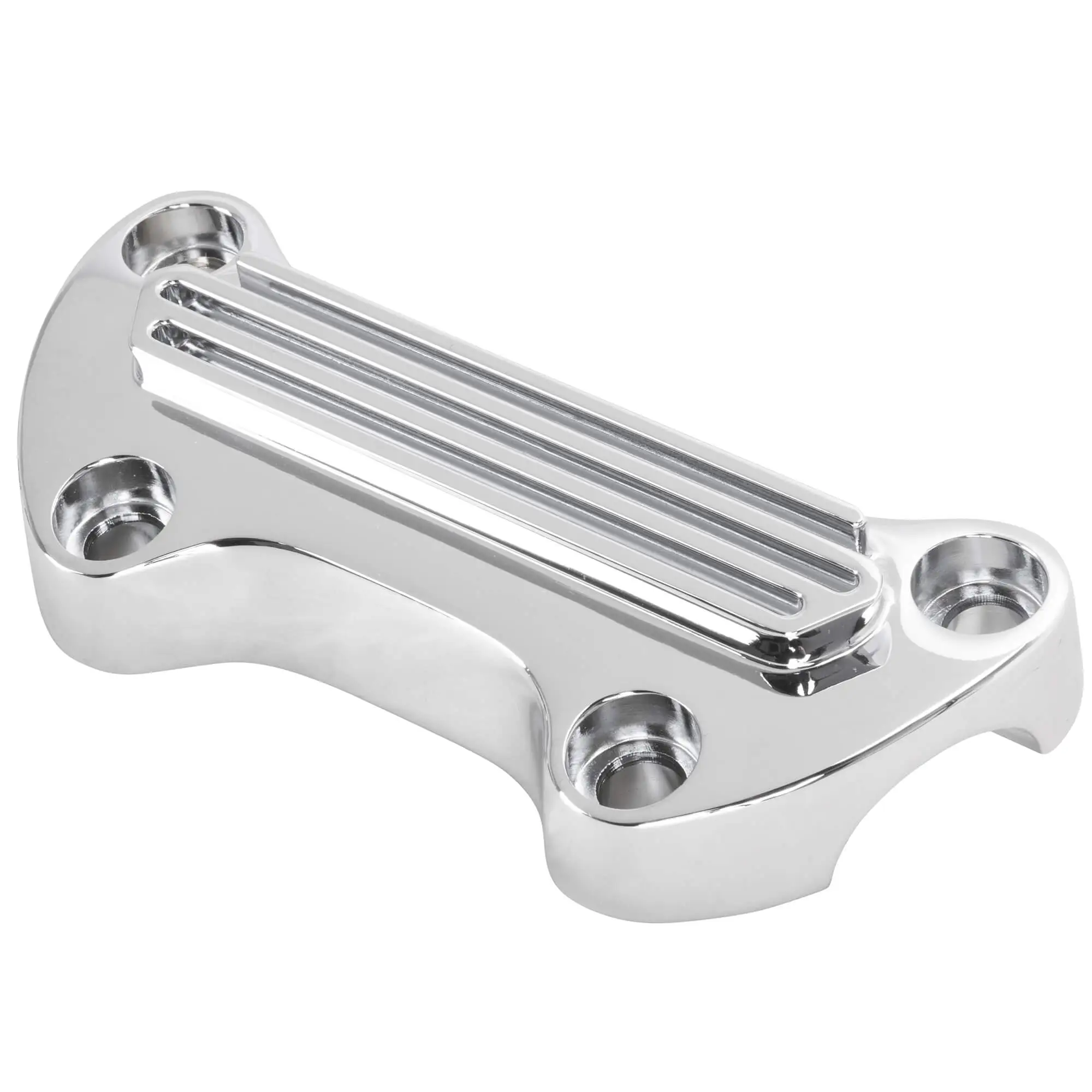 This upper Handlebar Clamp replaces the stock style Harley-Davidson riser clamp and fits models with 3-1/2″ on-center risers and offset mounting holes.