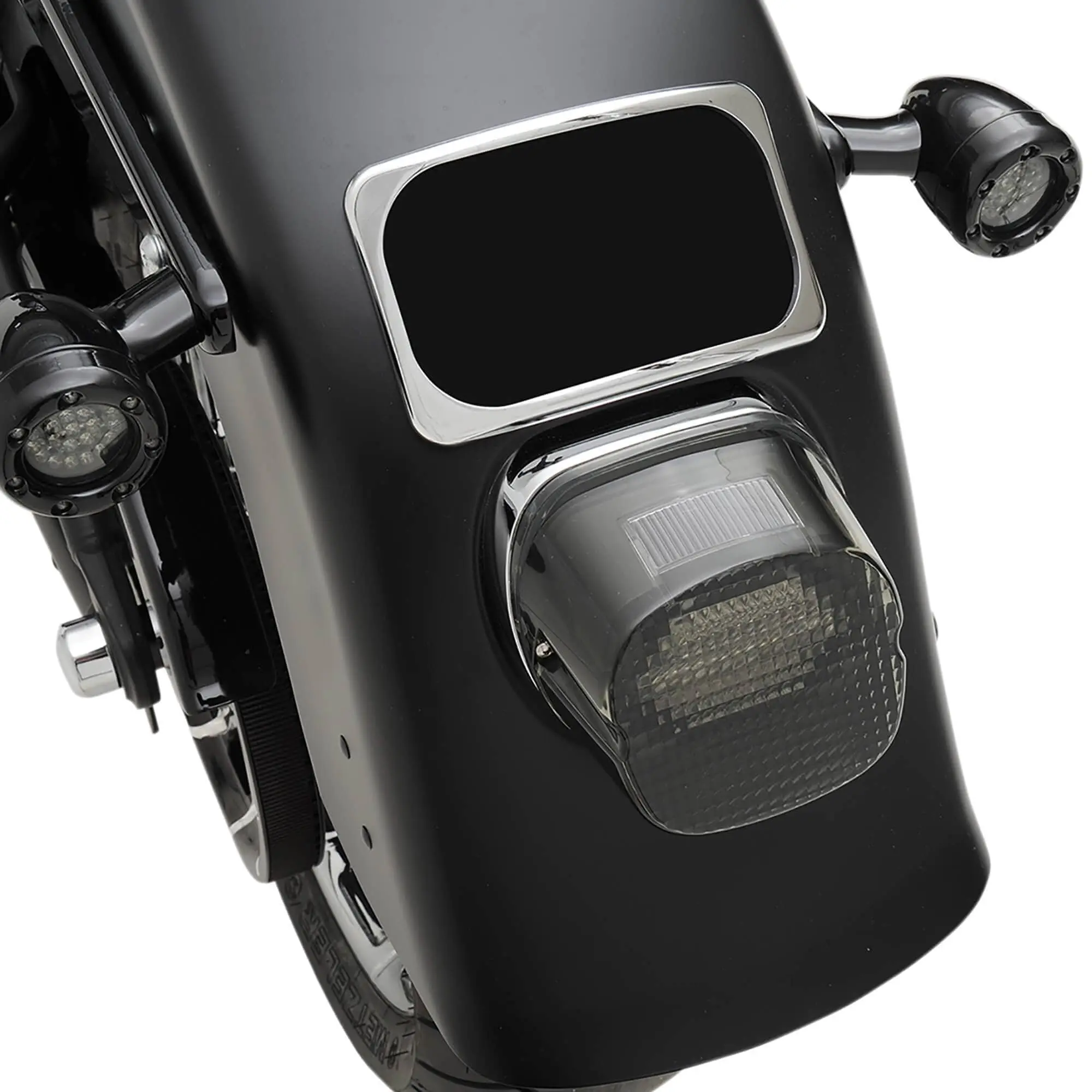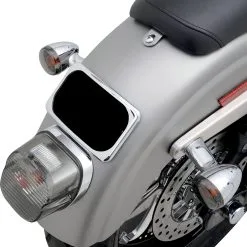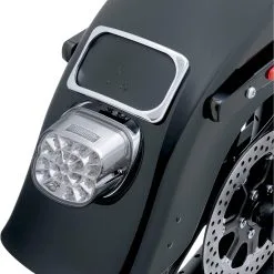 These Drag Specialties radius license plate mounts offer a unique custom look and fit 3 bolt Harley-Davidson fenders up to 8″ wide.