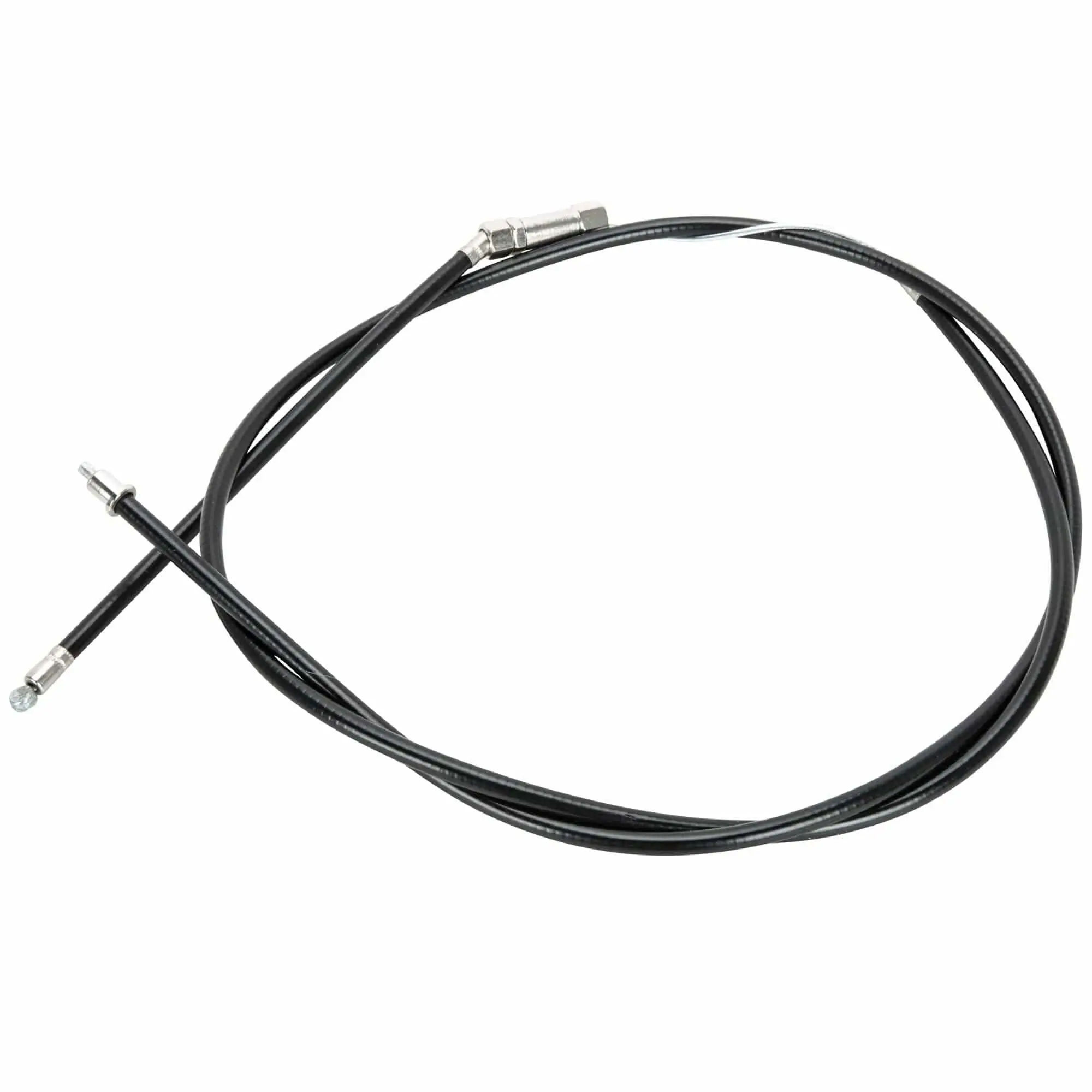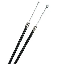 | THROTTLE & IDLE CABLE MEASUREMENT DEFINITIONS See the example diagram above to see how this cable is measured. Note that the diagram is just an example, and is not a drawing of this exact cable! Also, there can be variations of these measurements by +/- .25″ (6mm) due to manufacturing tolerances. Elbow Length: Overall length of elbow section, if there is one. Elbow Angle: 45 degree, 90 degree, or N/A (no elbow) Housing Length: Overall length of cable housing, not including adjuster or elbow. Measurement stops at elbow where black housing meets chrome. Free Play: The full amount of travel of the inner cable. Pull inner cable fully to one side, measure length, not including cable end (ferrule) or return spring. | |