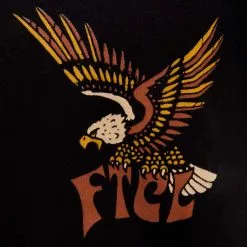 This shirt was inspired by a weird pizza experience held on the Centralia Run a couple years back with a few friends. We grabbed a few pizzas from a place called Mystic Pizza where the dude making them seemed like one who partakes in micro dosing. After slamming the pizza and jumping on our choppers to ride back to camp which was only 150 miles away. The trip seemed to take us off on another direction, what felt like 8 hours later and only one gas tank we were seeing trails, trees falling and deer eyes glowing like the devil. All we had was each others light beams to guide us through the woods and the eagle over our backs. Mystic Pizza Ceremony man… Forever The Chaos Life