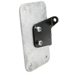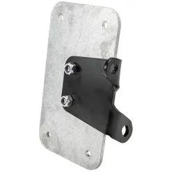 This Left Side Axle Plate License Plate Bracket is designed in coordination with the Gasbox Axle Plate Threaded Bungs. This set up allows you to mount your license plate to the unused fixture holes on a 1936 – 1957 OEM style big twin rigid frame. Black powder coated steel. Made in the USA.