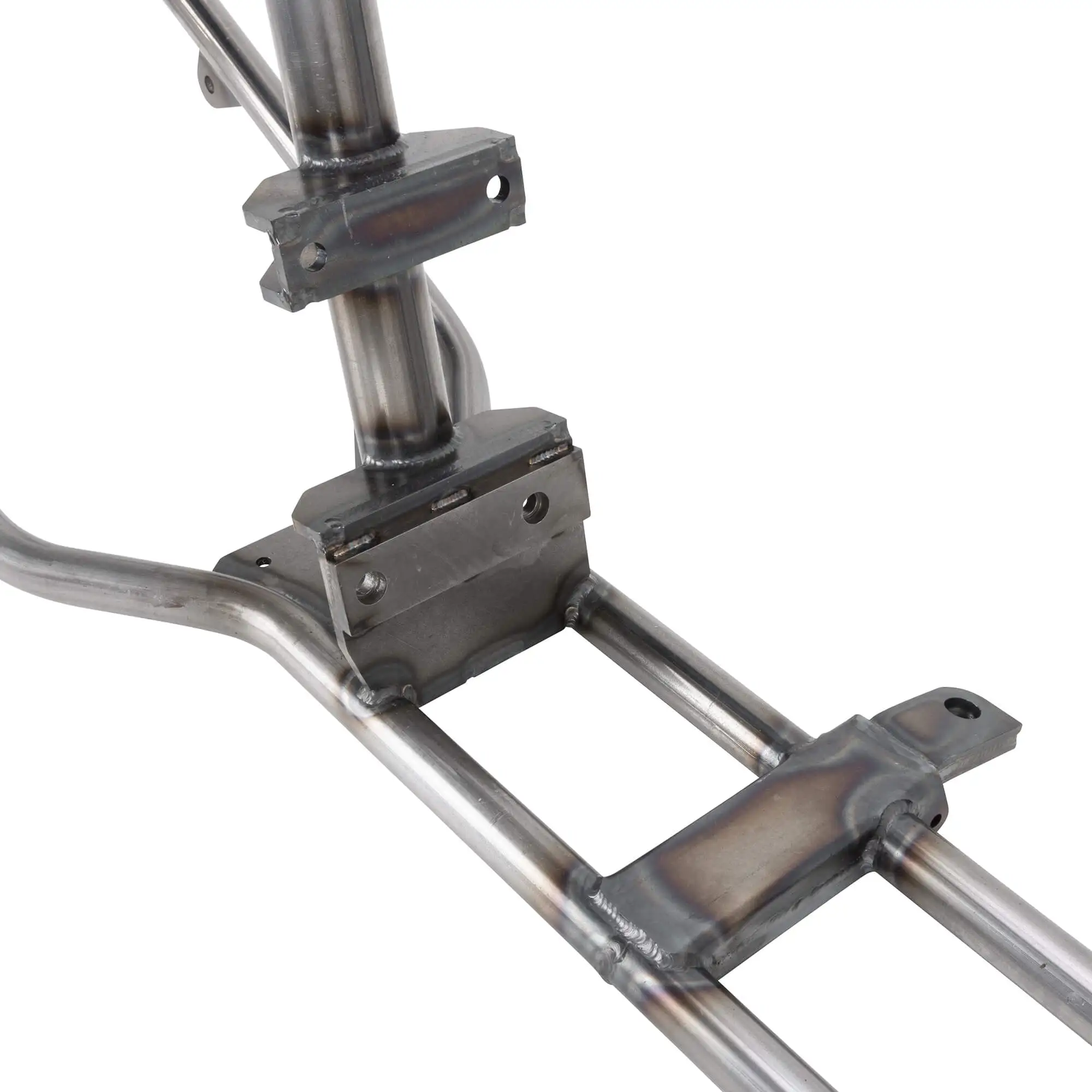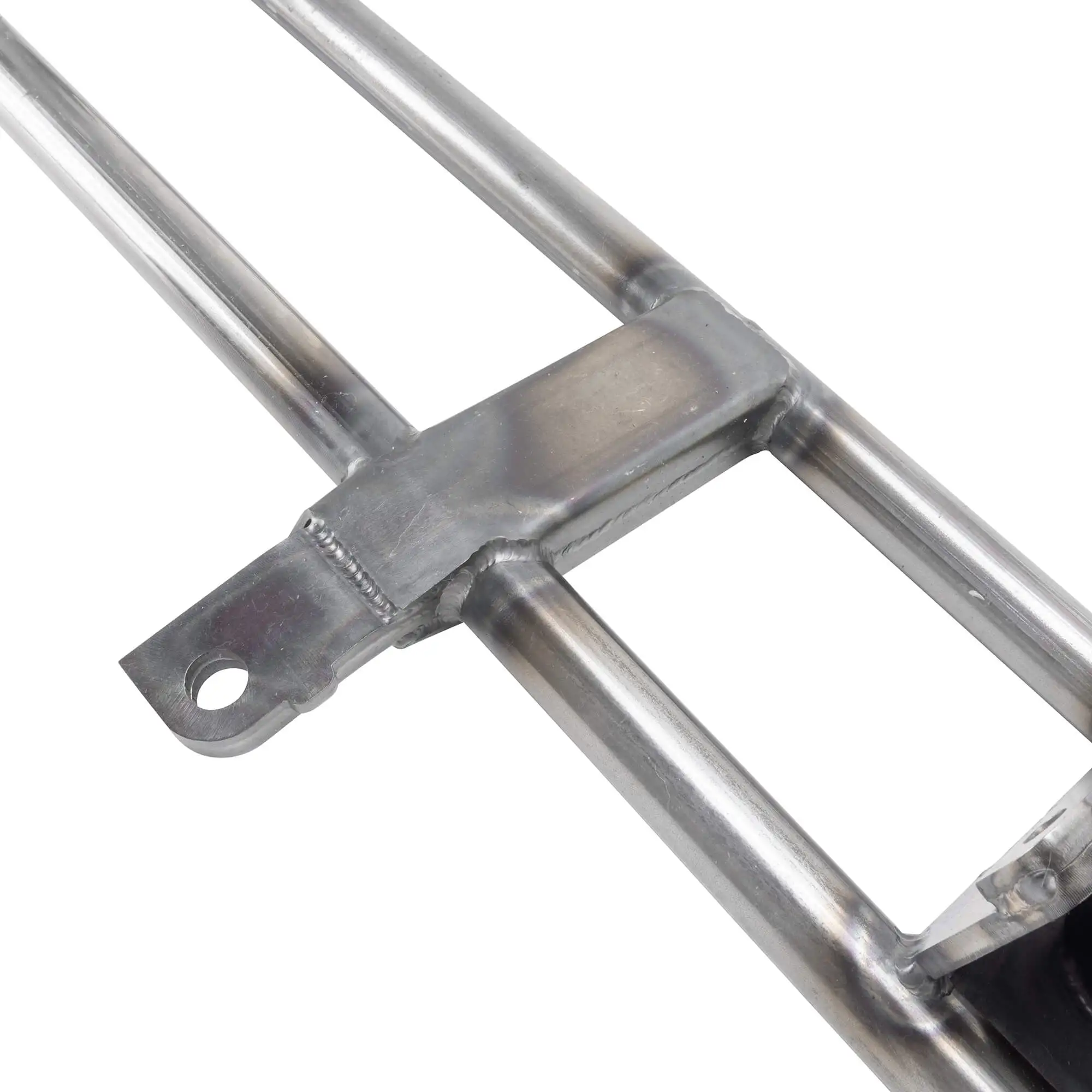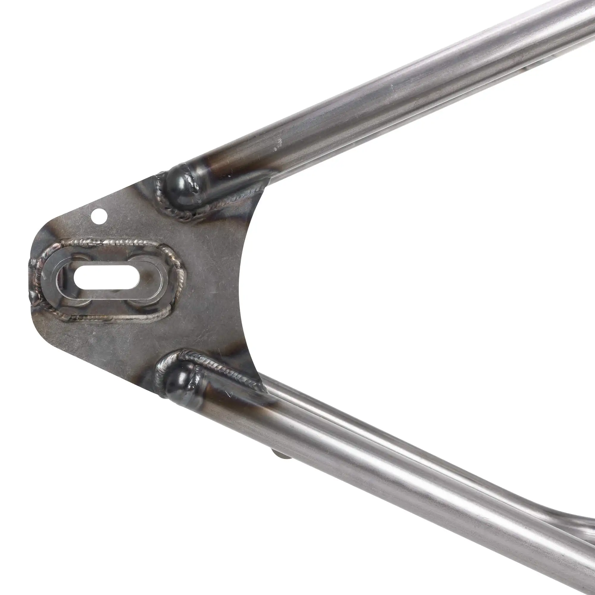 The neck has a 32 degree rake and is in the stock location, this frame has no ‘up’ or ‘out’ dimension to the neck, is set up for a 1″ stem, and utilizes 1″ stem Timken style neck cups. This stem size is very common and is found on narrow glide front ends on Sportsters 1982 and later, and on Harley Big Twin front ends, including narrow glide, wide glide, OEM and most aftermarket springer front ends.