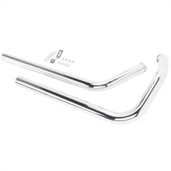 These High Low Shotgun Drag Pipes fit 1986-2003 Harley-Davidson Evolution Sportster engines in Rigid frames. Includes universal mounting kit. Manufactured from steel and chrome plated by the Gasbox in Cleveland, Ohio, USA.