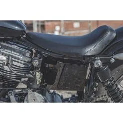 This Oil Tank is designed to fit 1965 and later Harley Davidson four speed Big Twin swing arm frames. These tanks are designed to bolt into your stock frame using our mounting brackets. The rear bracket clamps to the frame and the front bracket replaces to clutch cable mount. You will need to cut off left side stock oil tank tab, if it isn’t broken off already (ha!). You will need to make a modification to the front of the rear fender as it will hit the oil tank bracketed. If you are using a 1980’s era frame, the integrated clutch cable front oil tank mount will need to be eliminated and an earlier style mount will have to be adapted.