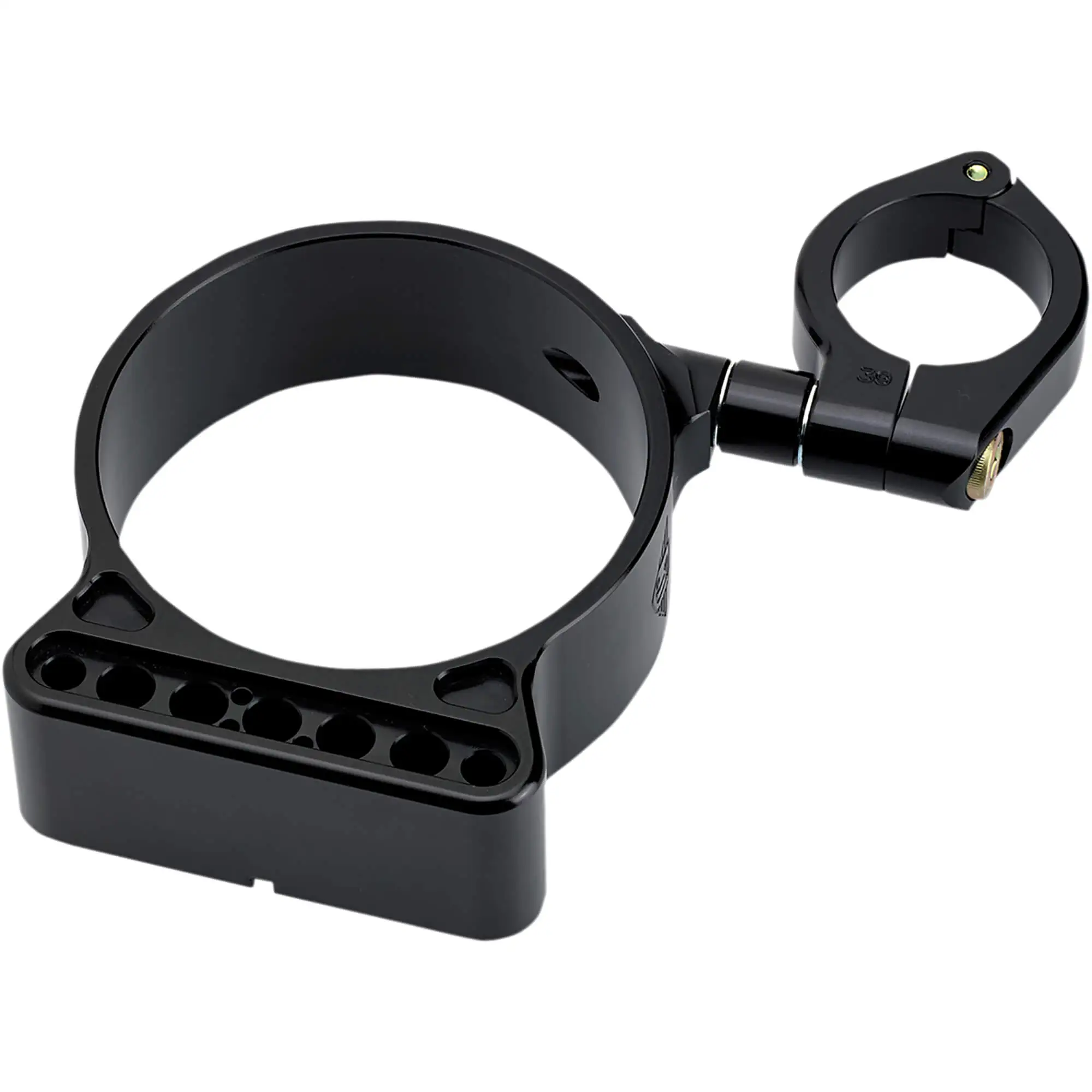 - Attach to the left fork tube and is virtually adjustable, in every direction, and clears the fuel tank easily