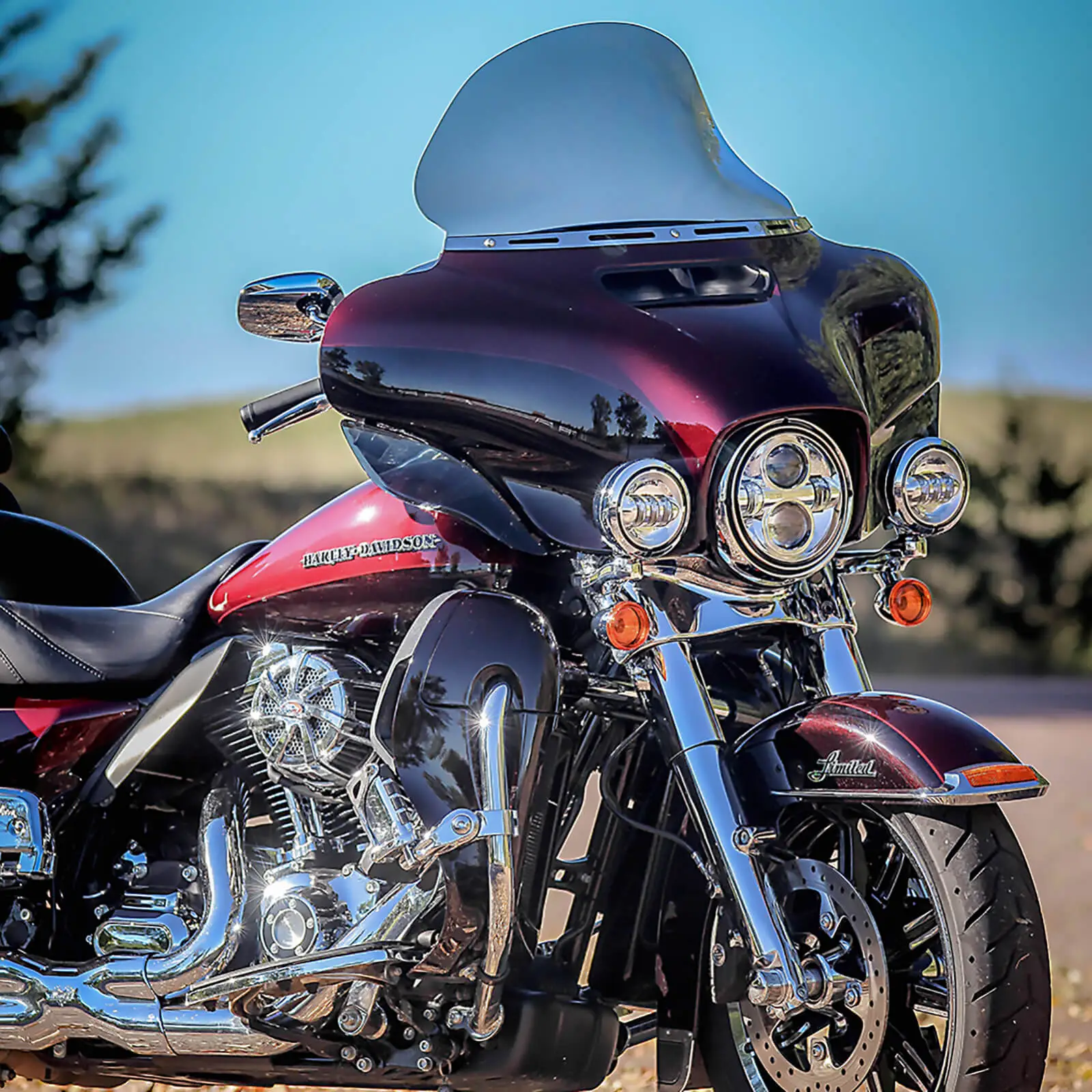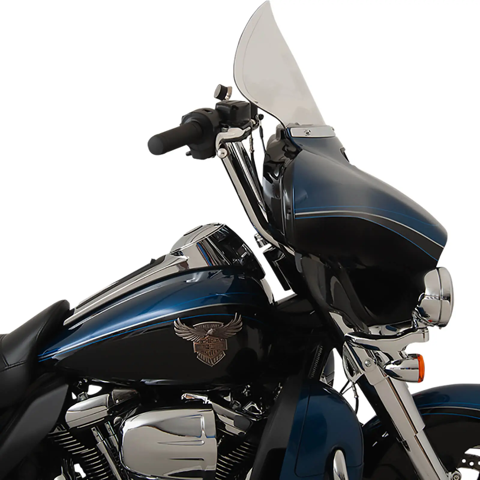 Klock Werks Flare is the ORIGINAL windshield of its kind, and has surprised riders everywhere with not only how great it looks, but also with how well it performs. The innovative, patented, design features “hips” at the outer edge of the shield that re-route the air to add downforce to the front of the bike, improving stability vs riding with a stock shield. The “flip” at the top of the Flare is designed to kick the air up and back as “clean”, less turbulent air for the rider and passenger. Made from hard-coated polycarbonate material for added durability. See Additional Information for fitment.