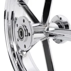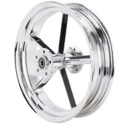 Nothing screams chopper like Invader wheels! However finding a set of originals in decent condition is a tall order, and you still need to worry about metal fatigue and other unseen issues. With that in mind Led Sled Customs started manufacturing their own brand new Invader wheels! This dual flange rear wheel is offered in a Chrome finish, featuring bearings for a 3/4″ axle included. The hub is designed to accept a sprocket and brake disc with 2.2″ center hole, the mounting holes on the flanges measure 7/16″ x 14 on one side, and 3/8″ x 16 on the other.