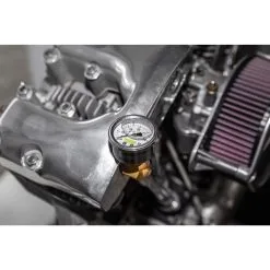 Lowbrow Customs oil pressure gauges are high-quality, with brass internals and a stainless steel housing. 1-3/4″ diameter. Precision made to ISO standards and individually tested, these glycerin filled gauges offer an accurate oil pressure reading on your Harley-Davidson or other motorcycle. They are 1/8 inch NPT thread, and can be used with a variety of oil pressure gauge adapters and fittings available in both chrome or brass. Check out the