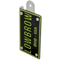This vertical license plate bracket is designed for use on bicycles and mini bikes. The mounting hole is 3/8 inch diameter, and works with most standard bicycle axles. It can also easily be bolted to any universal tab or mount. Included is a stamped aluminum LOWBROW bicycle license plate and a set of stainless steel nuts and bolts to fasten your plate to the bracket. Plate bracket is 16 gauge (.060 inch) tumbled stainless steel.