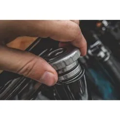Set your custom gas or oil tank apart with this Cast Aluminum Spinner push-in style Oil Cap! These caps are investment-cast in aluminum, and includes O-ring for a secure, leak-free seal. These caps are cross-drilled for venting. This replacement push-in style oil filler cap fits most Harley-Davidson Sportster and Big Twins as well as most custom oil tanks with side-fillers. Plug measures 1-1/4″ (not including O-rings) Sold Individually.