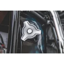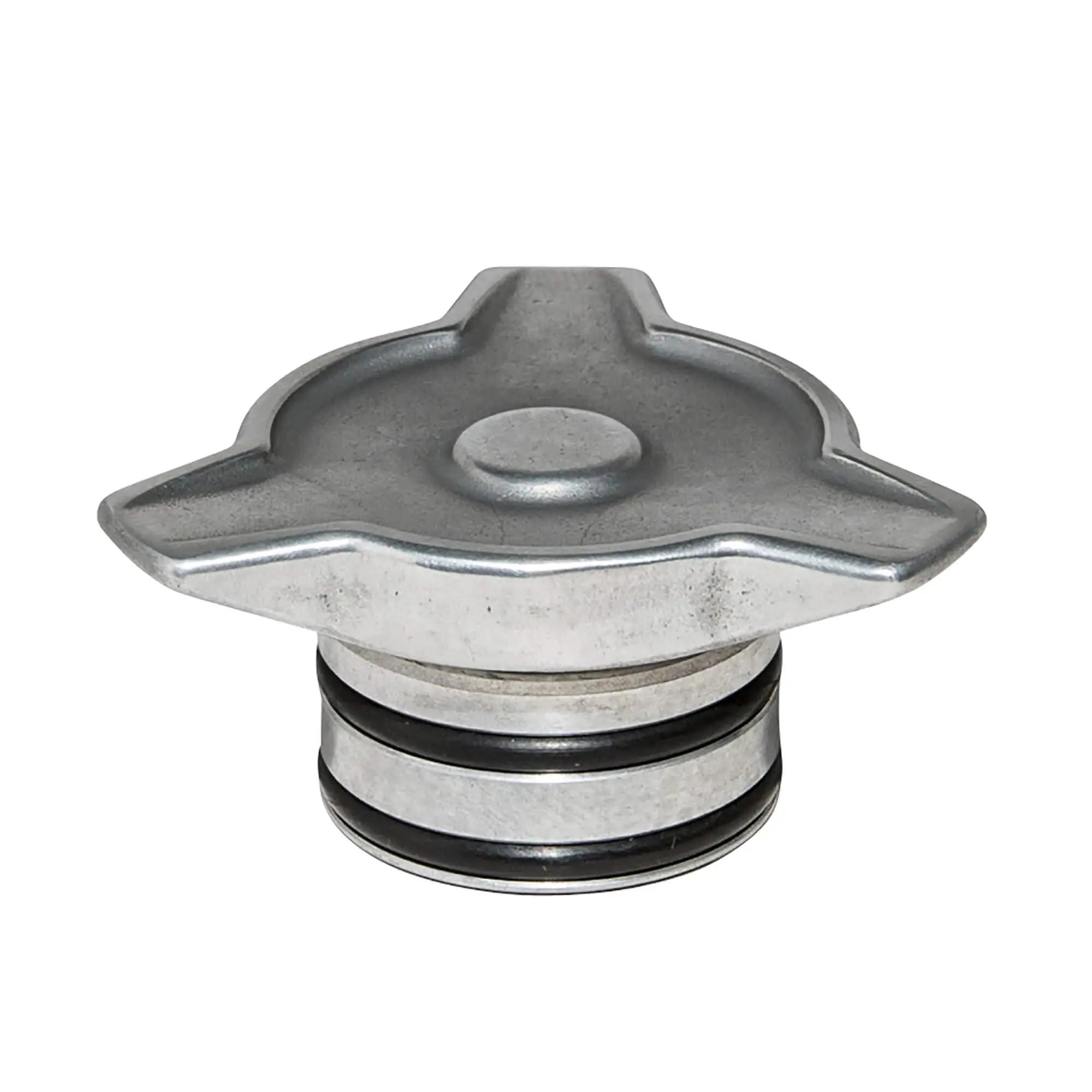Set your custom gas or oil tank apart with this Cast Aluminum Spinner push-in style Oil Cap! These caps are investment-cast in aluminum, and includes O-ring for a secure, leak-free seal. These caps are cross-drilled for venting. This replacement push-in style oil filler cap fits most Harley-Davidson Sportster and Big Twins as well as most custom oil tanks with side-fillers. Plug measures 1-1/4″ (not including O-rings) Sold Individually.