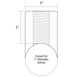 These are coped, threaded bungs for making custom handlebars. They are tapped for 1/2″-20 fine thread. 1″ diameter, and are coped for 1″ tubing, and give 1″ of rise from the flat end to the bottom of the coped section. They are 1018 cold rolled steel. Sold in Pairs. Made in Ohio, USA.