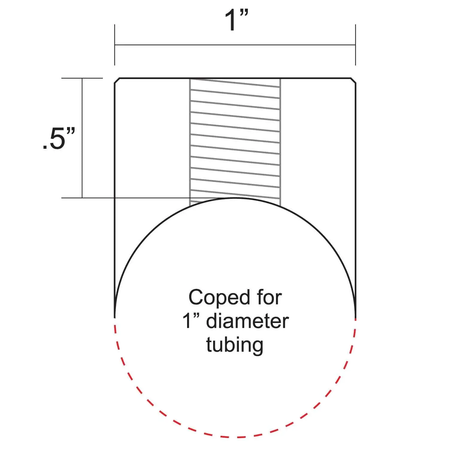 These threaded, coped steel bungs are 1″ diameter and are drilled and tapped all the way through with 3/8″-16 thread. These larger diameter bungs are great if you want them to match up to the same diameter as your 1″ frame tubing, and give a larger surface area to mount against for more stability. Coped for a perfect fit on 1″ tubing, tack in place then weld it up, mounts are finished in minutes. These give 1/2″ of rise, measured from the top of the coped radius to the flat end. They are 1018 cold rolled steel for easy welding and are great for mounts of all sorts. Sold in Pairs. Made in Ohio, USA.