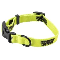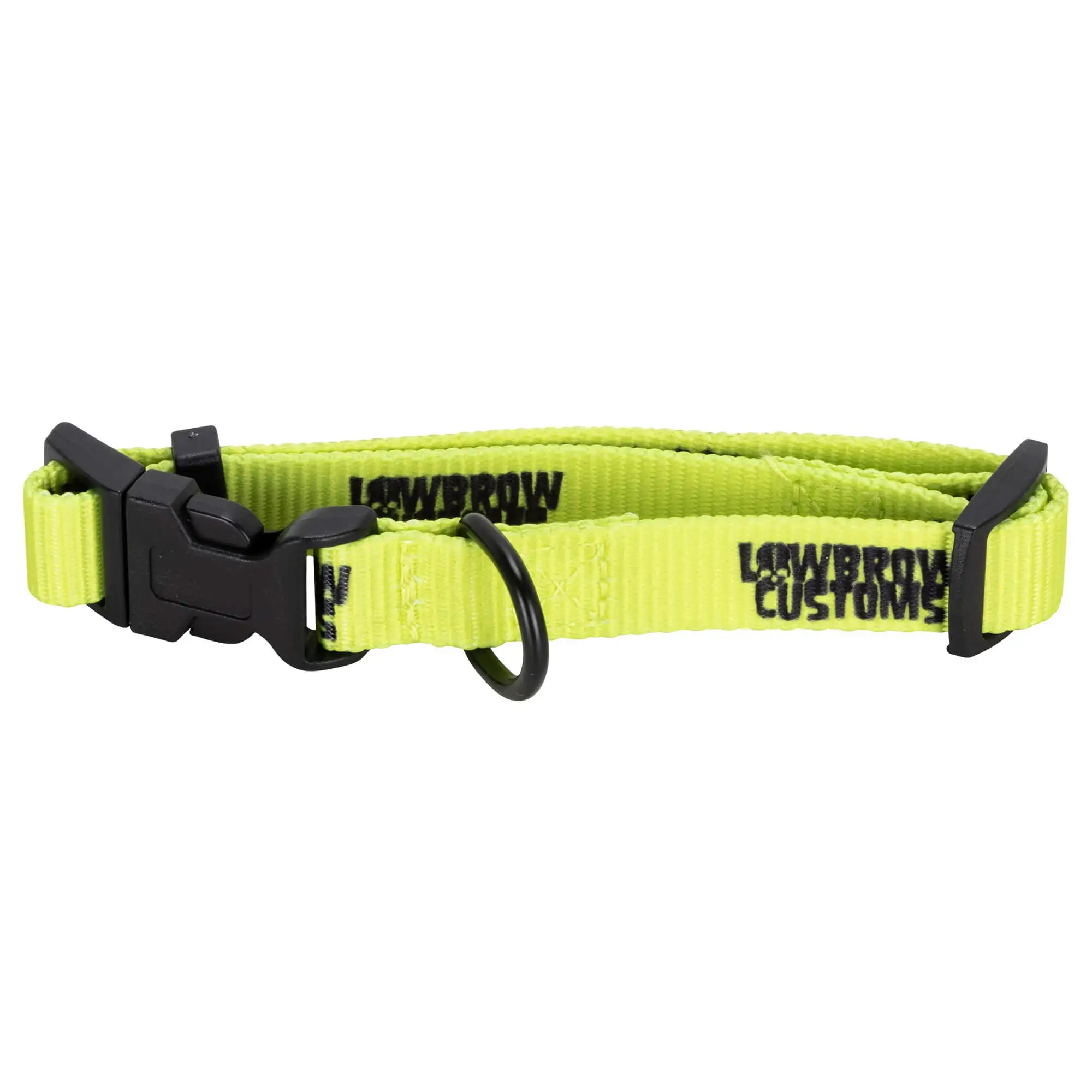 Keep you favorite Chopper Dog in style with this custom Lowbrow dog collar. These collars are produced from a super-strong polyester webbing which is then sub-died to produce the Lowbrow Customs print. Smooth rounded ABS lobster claw clasp makes putting on and removing the collar a snap. Each collar has a metal D-ring for the leash and a built-in slider for an adjustable fit.