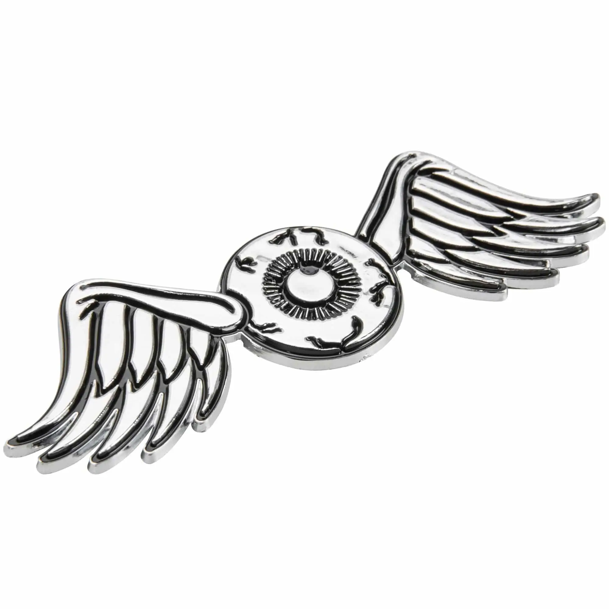 Lowbrow Customs Flying Eyeball Chrome Stick-On 3D Emblem