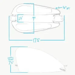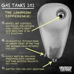 This is far superior to other Frisco Sportster style gas tanks that have a petcock bung on the flat bottom of the gas tank, as when your gas tank is mounted to your frame’s backbone it is at an angle, and this traps a lot of gas which cannot be used as it is below the petcock bung location. This design with the offset petcock bung on the very back of the tank allows you to use all the gas you can fit in there!
