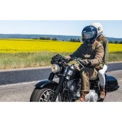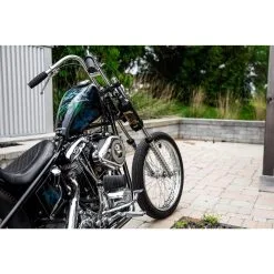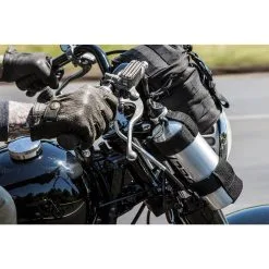 This Fuel Reserve Bottle Holder is made of ballistic nylon and securely cradles your fuel bottle with two heavy-duty velcro straps and a cord closure at the top. Two more nylon and velcro straps are included and will affix your fuel reserve bottle securely to your front forks, sissy bar, or anywhere else you see fit. The prototype was tested on a cross-country, 3,000 mile jaunt with no issues at all, and came in handy multiple times.
