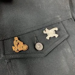 Everyone needs a little good luck in their lives! Die cast pin, nickel-plated with black and gold enamel highlights, 1.5″ high.