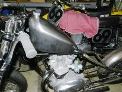 holds approximately 2.5 gallons and will give your bike style for miles. It is based on a highly modified frisco-mount Sportster gas tank, perfect for custom bikes, bobbers and choppers.