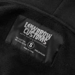 The Lowbrow Customs Blackout Hooded Sweatshirt is not your typical hoodie. This heavy-duty sweatshirt was designed by riders for riders and is built to last for years. This heavy sweatshirt is made from a heavy weight (16 ounce!) 70/30 cotton/poly blend and features double-stitching throughout. 1” ribbing on the waist and arm cuffs to help keep it from riding up when riding.