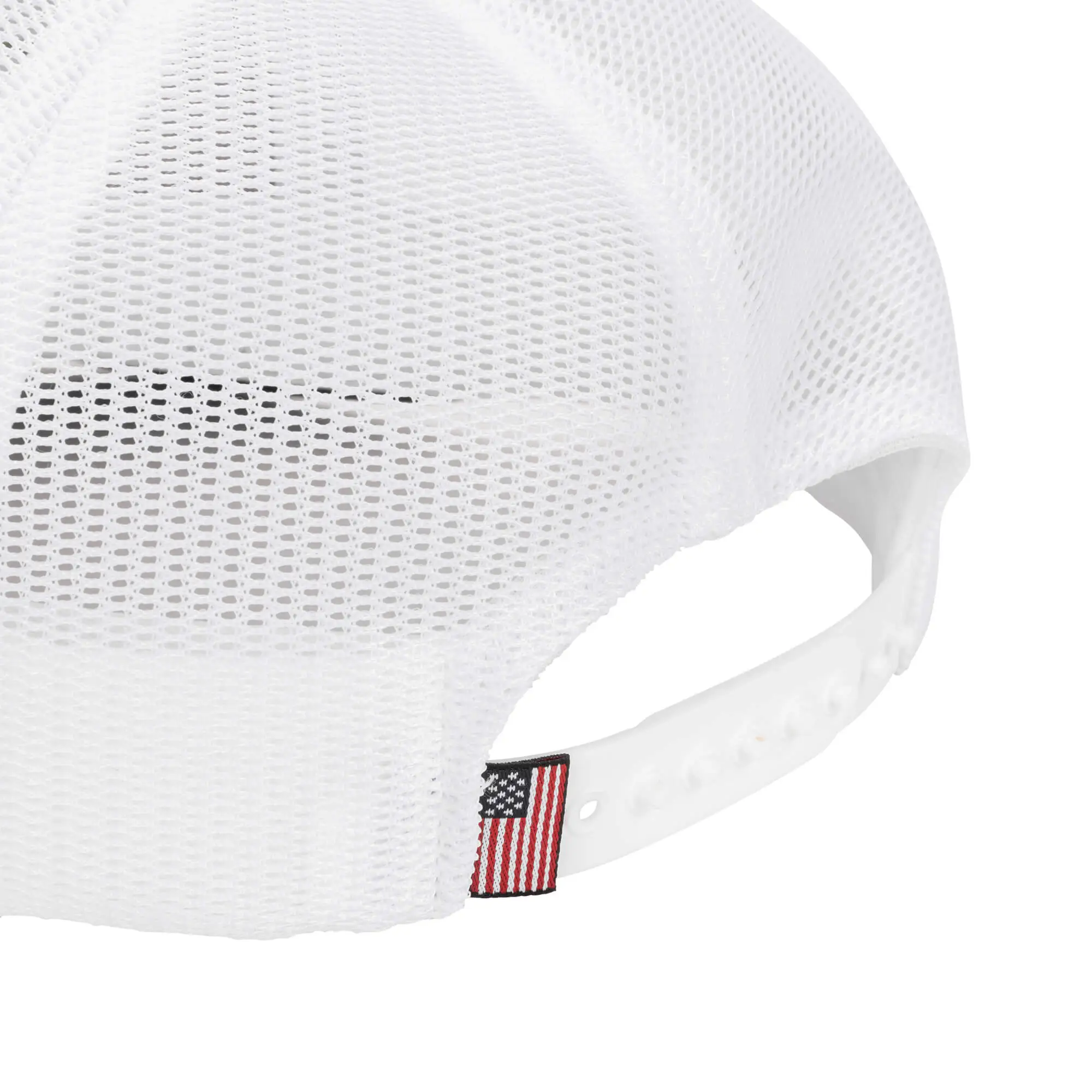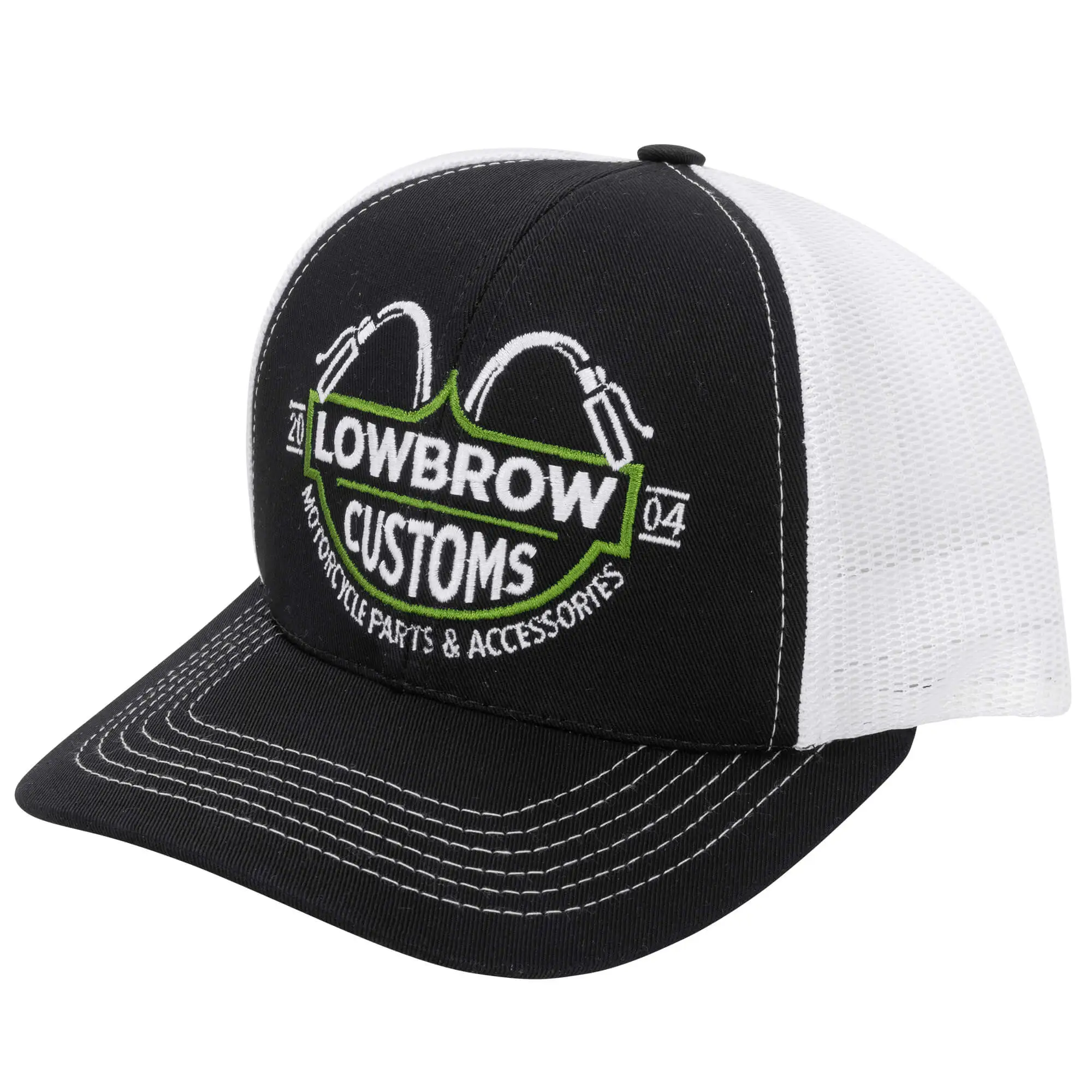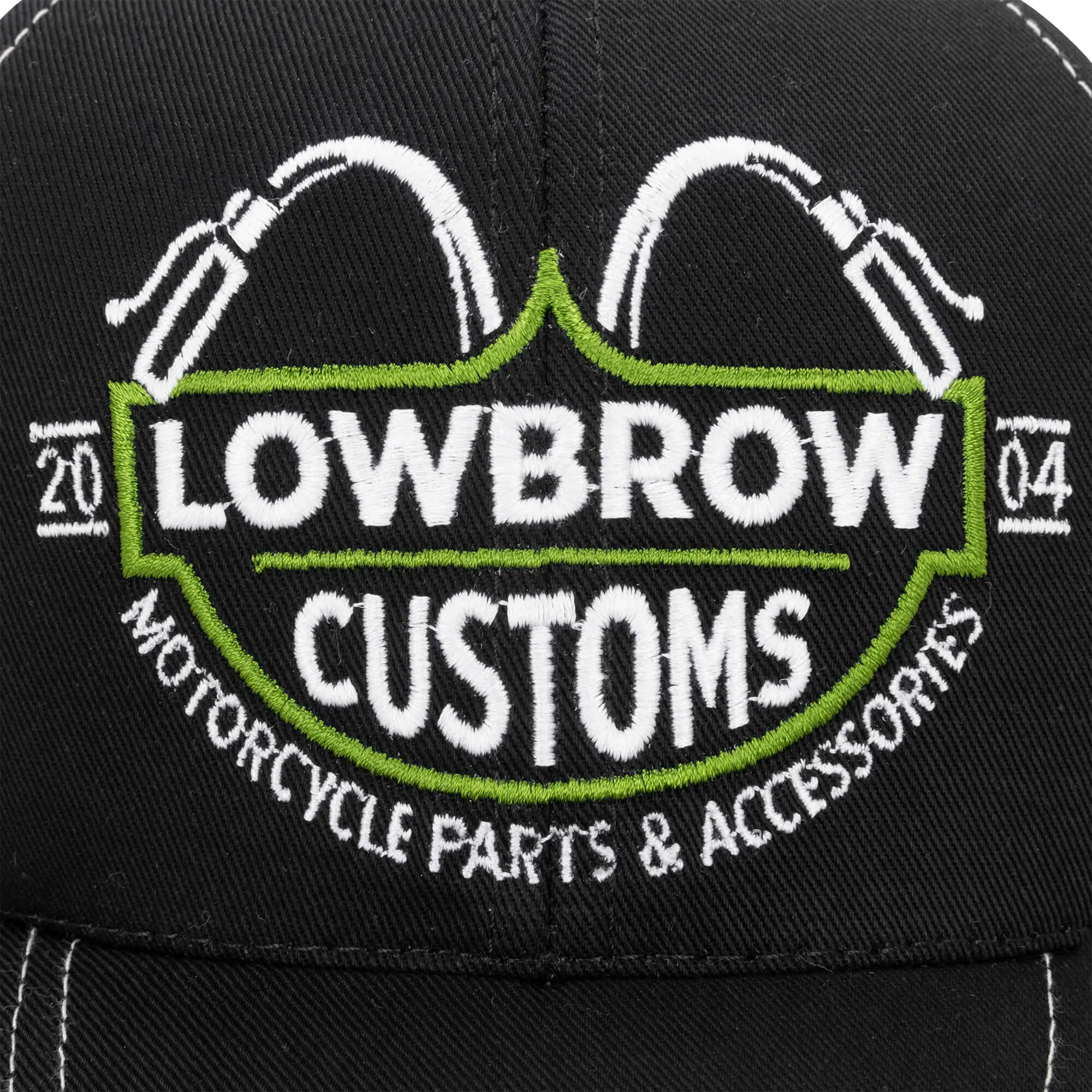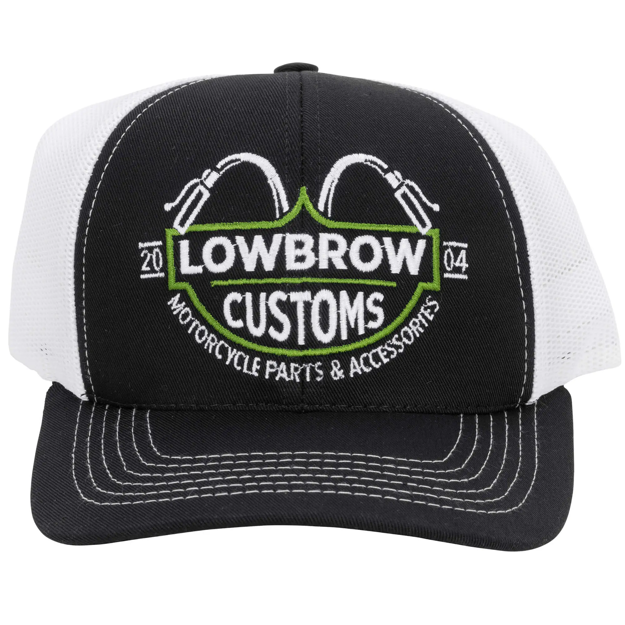 This mid profile, Lowbrow Rabbit Bars Hat features a twill material front with white stitching and a white mesh back for breathability. White eyelets on a 6 panel American Made hat that features the great profile and slightly curved bill. Two color embroidery and a Snap-back closure. One size fits most.