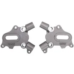 so they look right at home on any custom motorcycle. Included are a left and right axle plate, investment cast steel, machined and ready to go for a custom frame build. Axle plates are bare steel and oiled. The upper tubing bore accepts 1″ tubing and the lower 1-1/8″ tubing, perfect for that custom Shovelhead hardtail! The 3/4″ axle slot offers 1-3/4″ of front-to-rear adjustability and the axle plates are threaded 3/8″-24, ready for standard