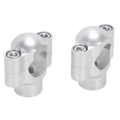 These machined, solid aluminum risers feature smooth riser clamps for a clean, simple style. Smooth Handlebar Risers fit all 1″ handlebars and include stainless steel hardware for the riser clamps. Accepts standard 1/2″-13