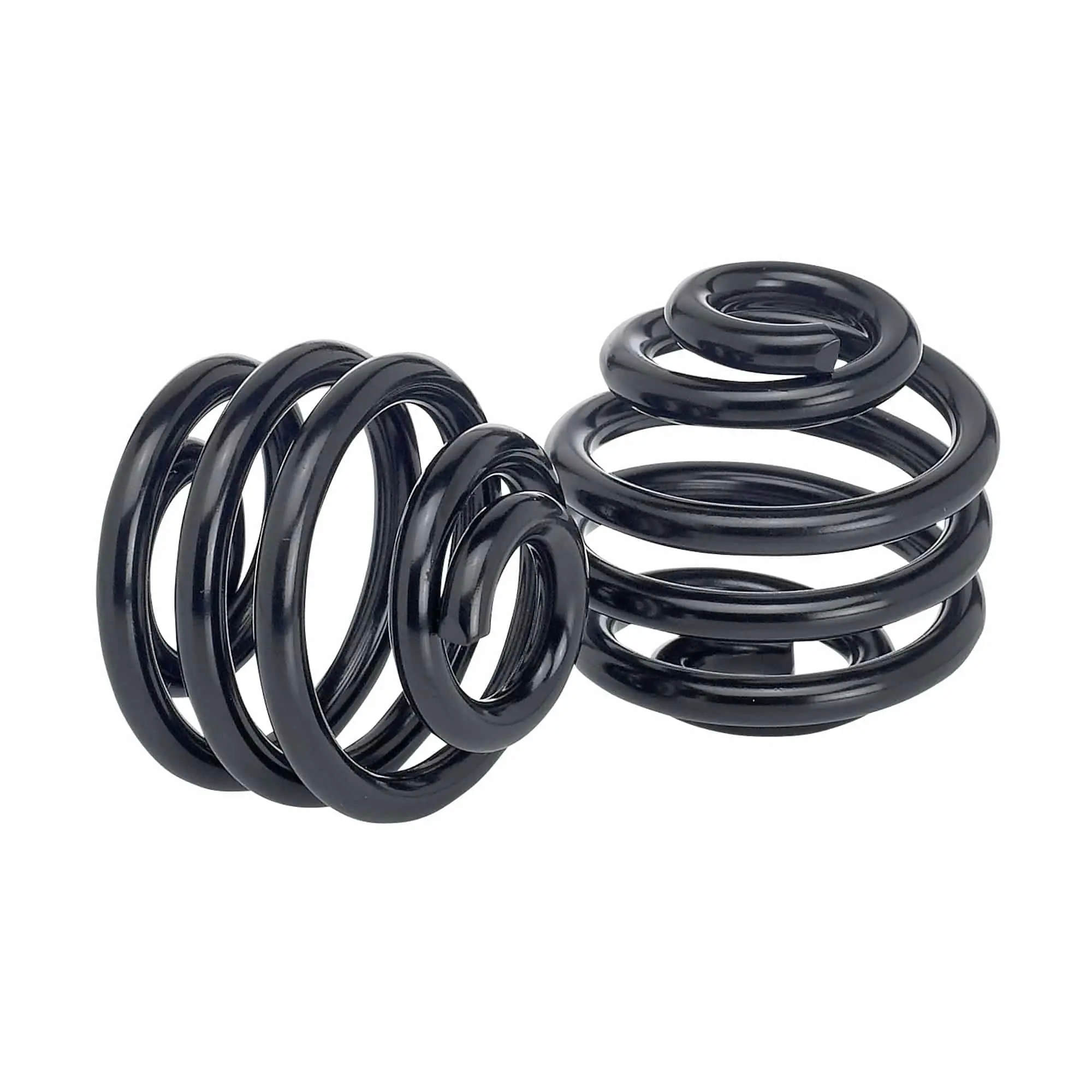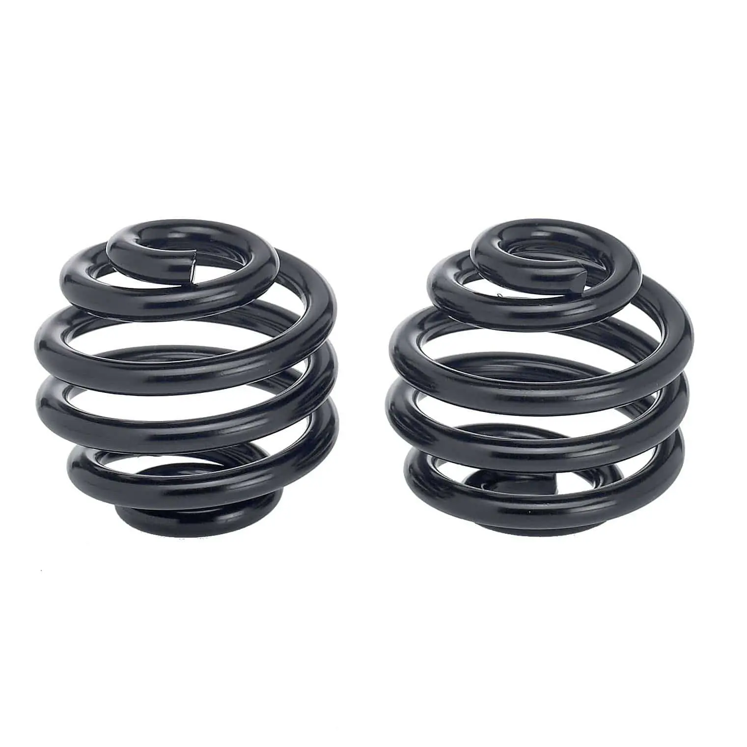Pair of traditional, barrel-style solo seat springs, 2 inch height. These are heavy duty springs that are black electroplated, superior in durability to powdercoat. Solo seat springs support the rear of your sprung motorcycle solo seat, while a