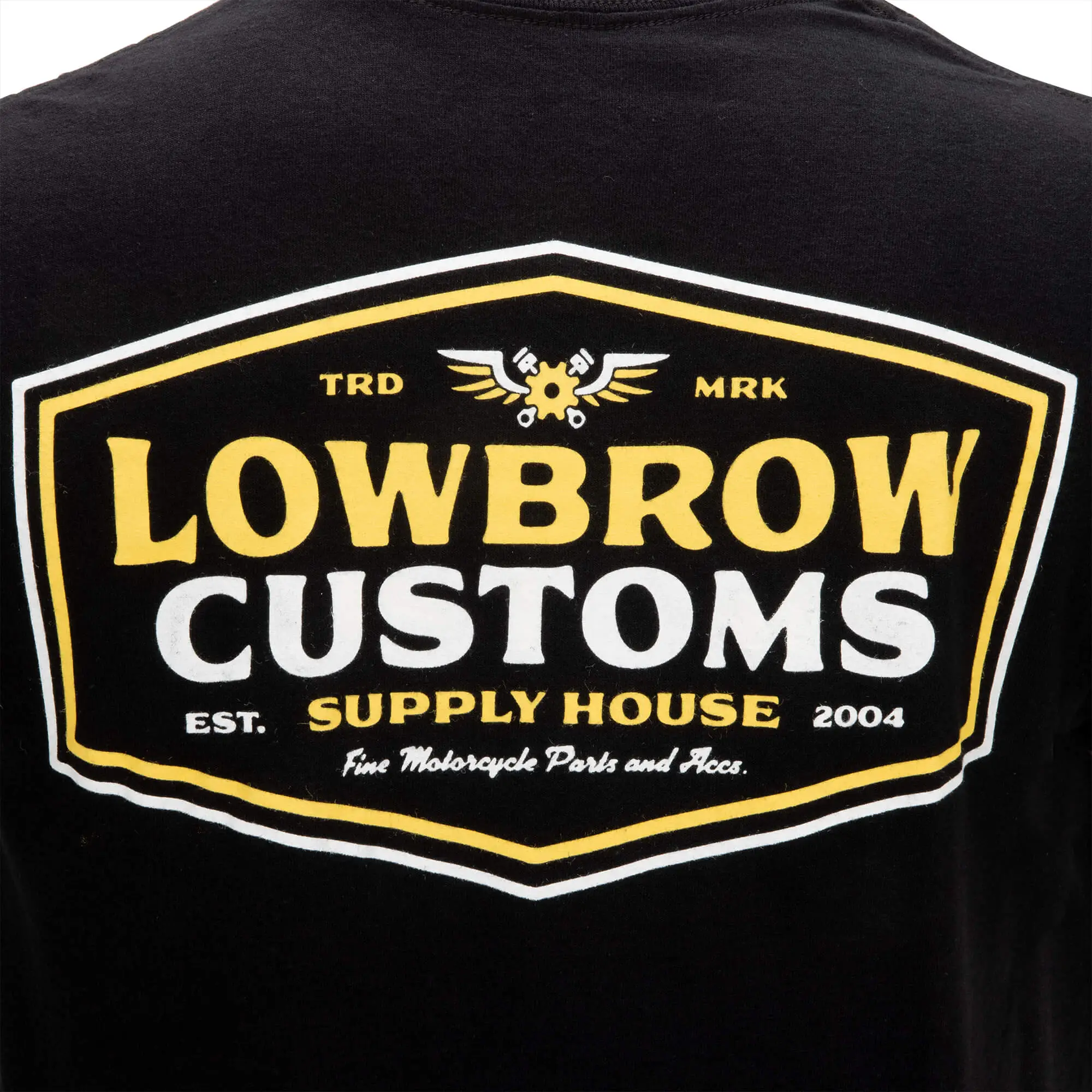 Supply House T-Shirt. Full back imprint, with a left chest logo. Premium, soft, 100% cotton black t-shirt for that vintage look and feel.