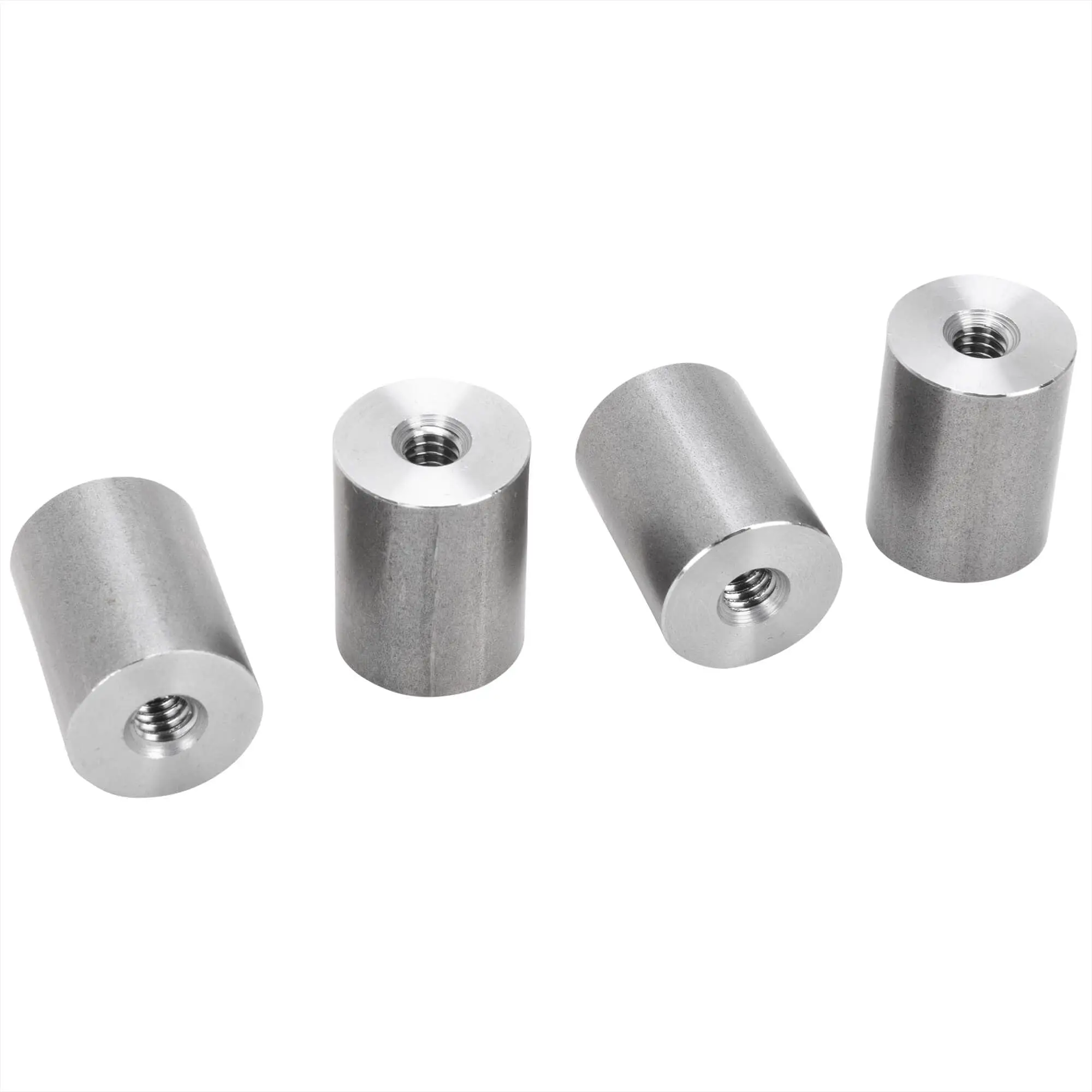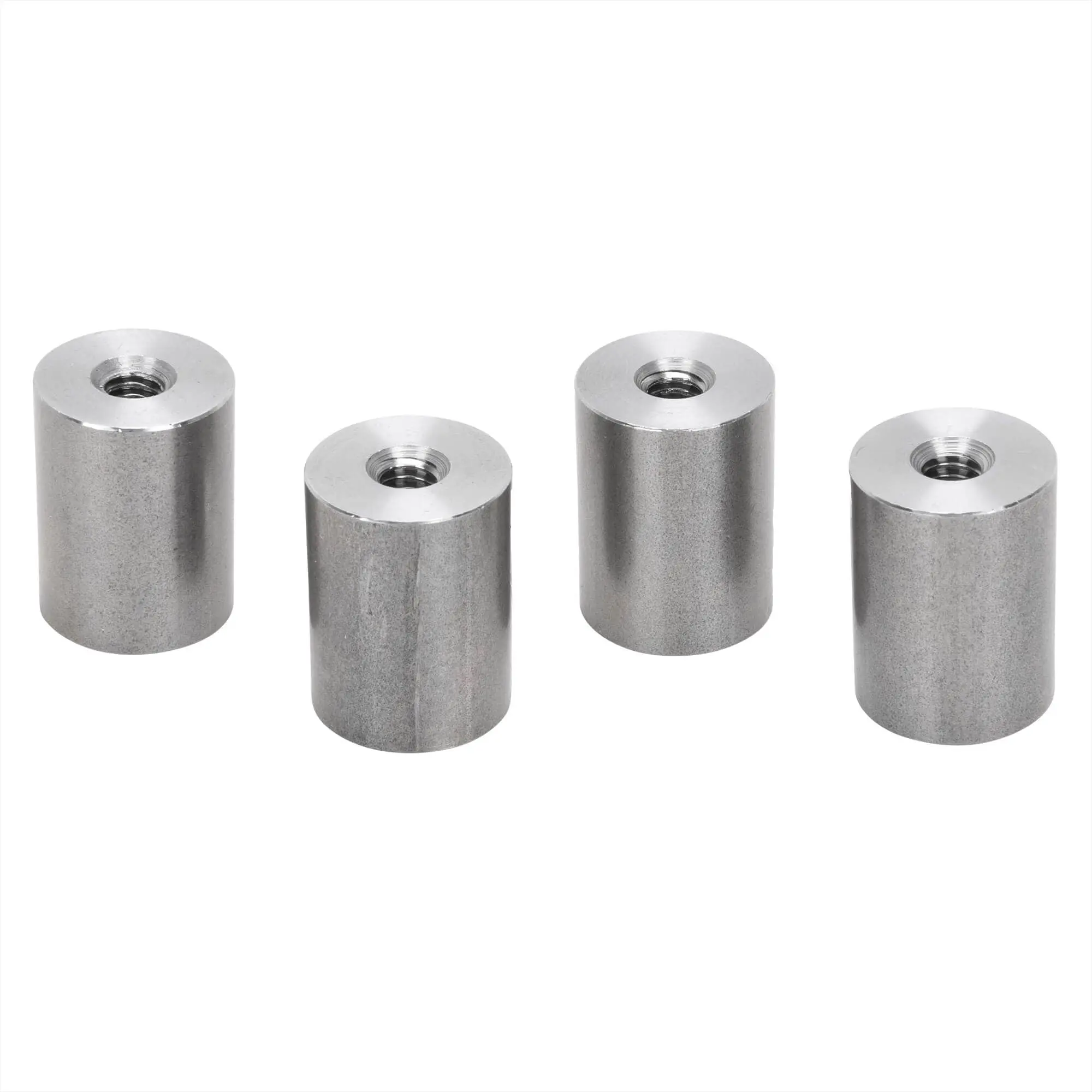 These threaded steel bungs are 3/4″ diameter and are drilled and tapped all the way through with 1/4″-20 thread. 1″ length. They are 1018 cold rolled steel for easy welding and are great for mounts of all sorts. Sold in four packs. Made in Ohio, USA.