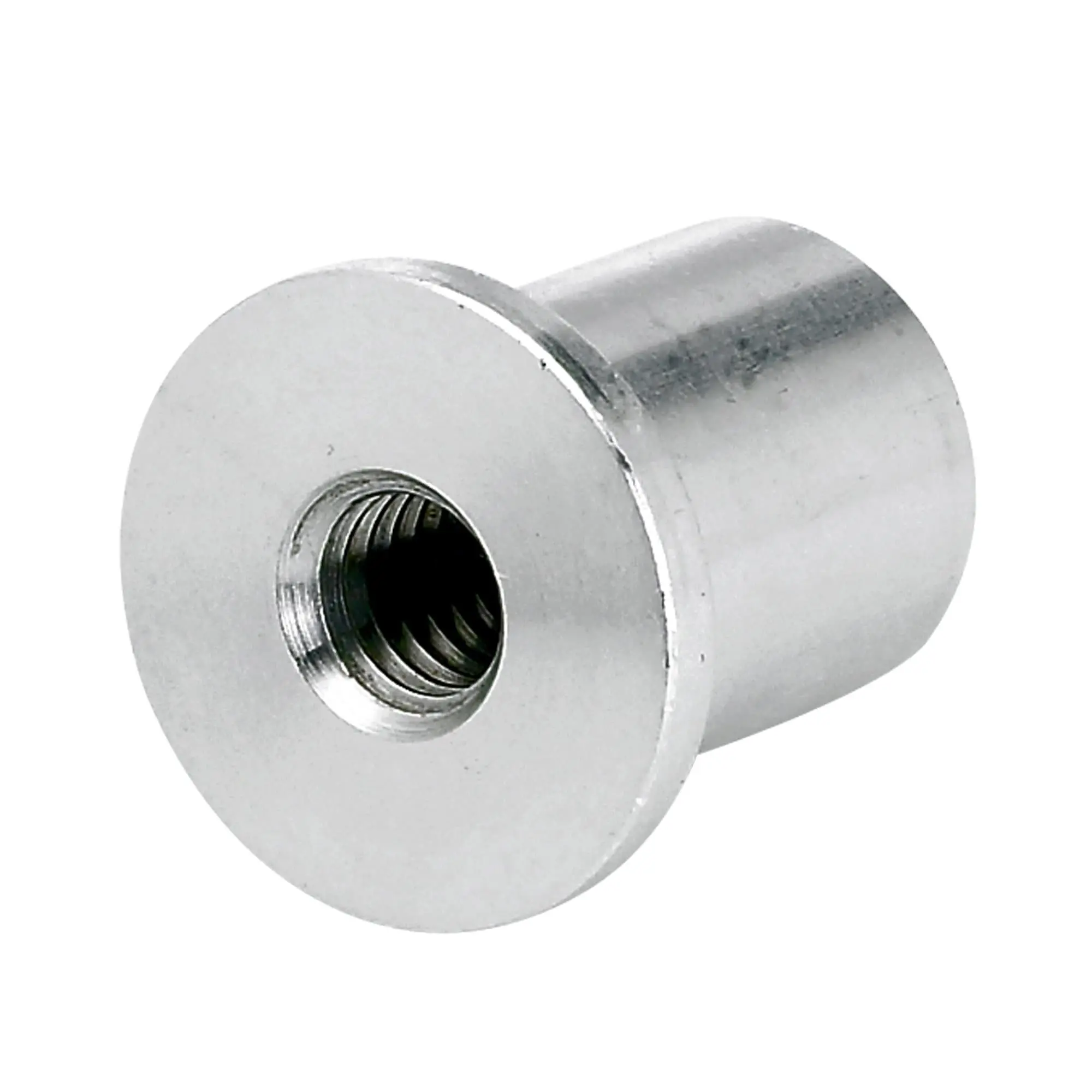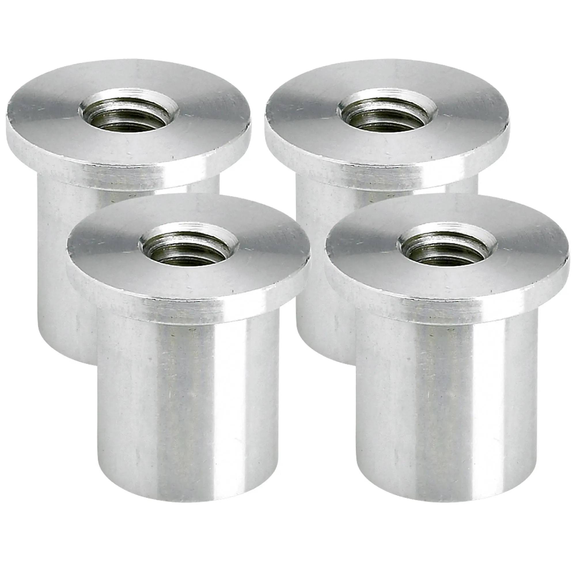 These tophat-shaped, blind threaded aluminum bungs are perfect for making gas tank and oil tank mounts, or for any other fluid filled vessel. 3/4″ OD with a 1″ OD flange that is 1/8″ thick. The overall length is 1″. Featuring a 3/8″-16 thread. Sold in a 4 pack. Made in Ohio, USA.