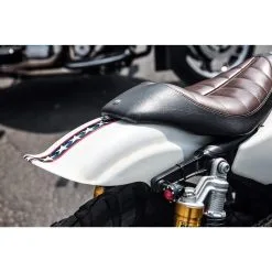 The Tsunami Fender from Lowbrow Customs bolts right in place of your stock rear fender (cutting rear fender struts required) and instantly changes the look of your bike. The Tsunami Fender is the go-to choice for tracker style bikes whether for the street or