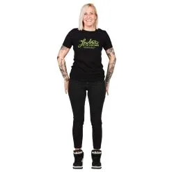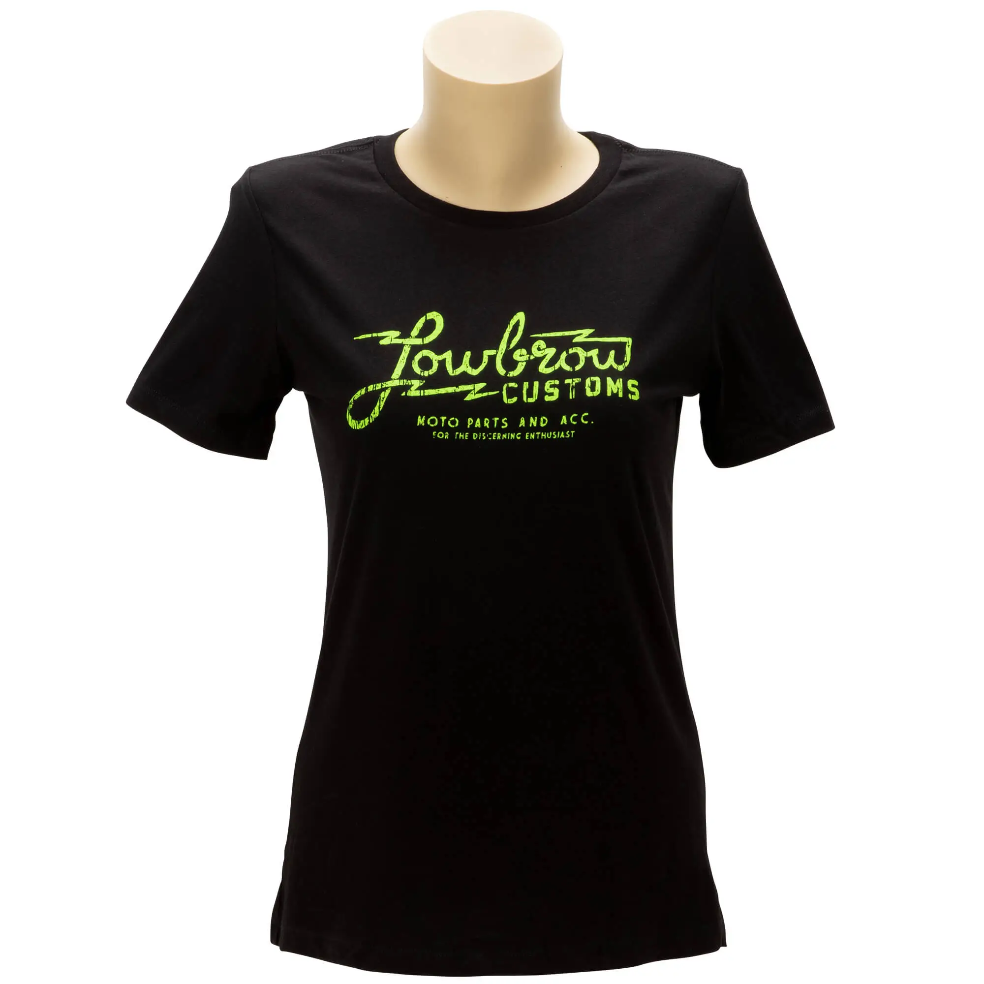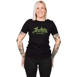 Full front imprint, featuring the Lowbrow Customs Women’s Lightning Logo. Printed on a 100% cotton, black t-shirt for that vintage look and feel.