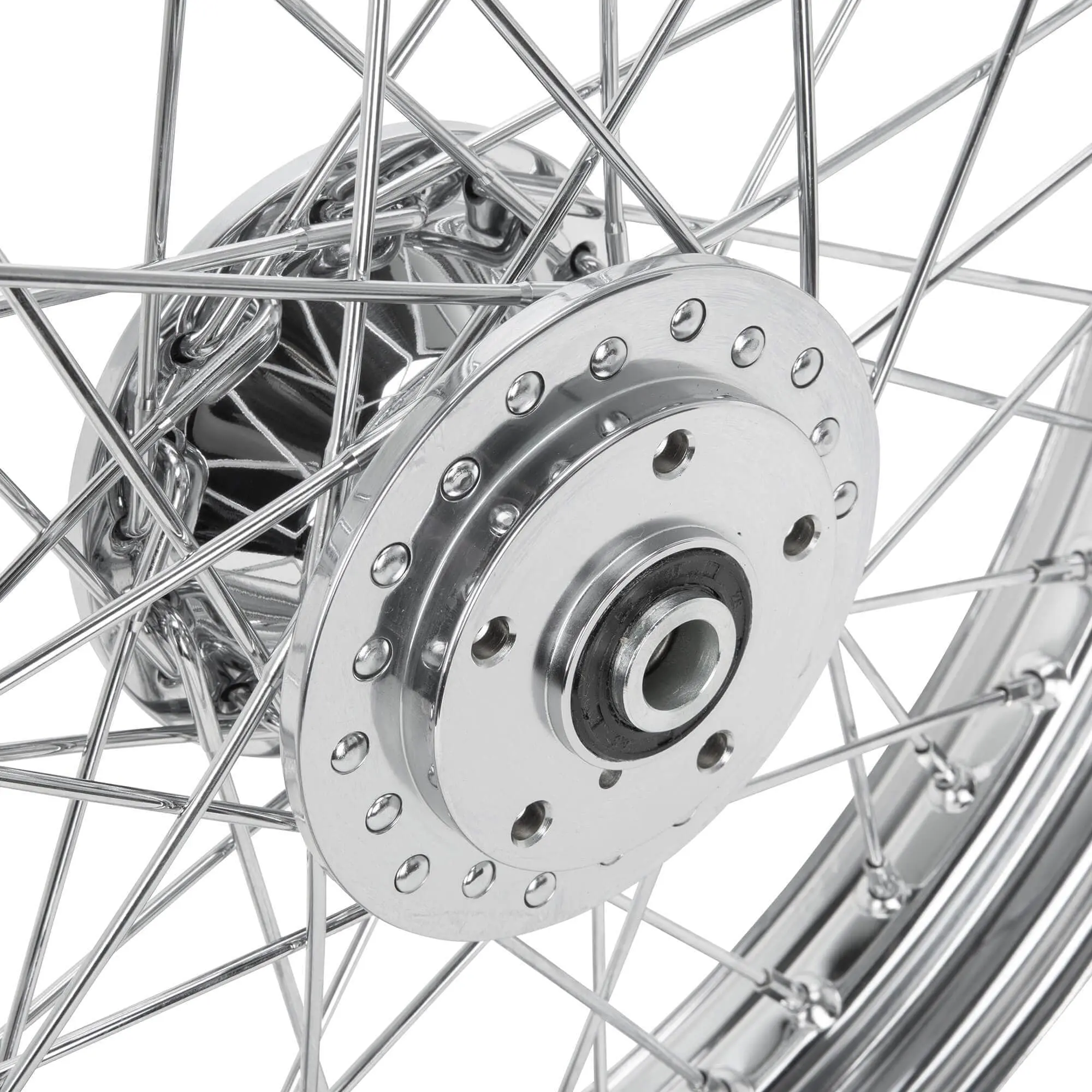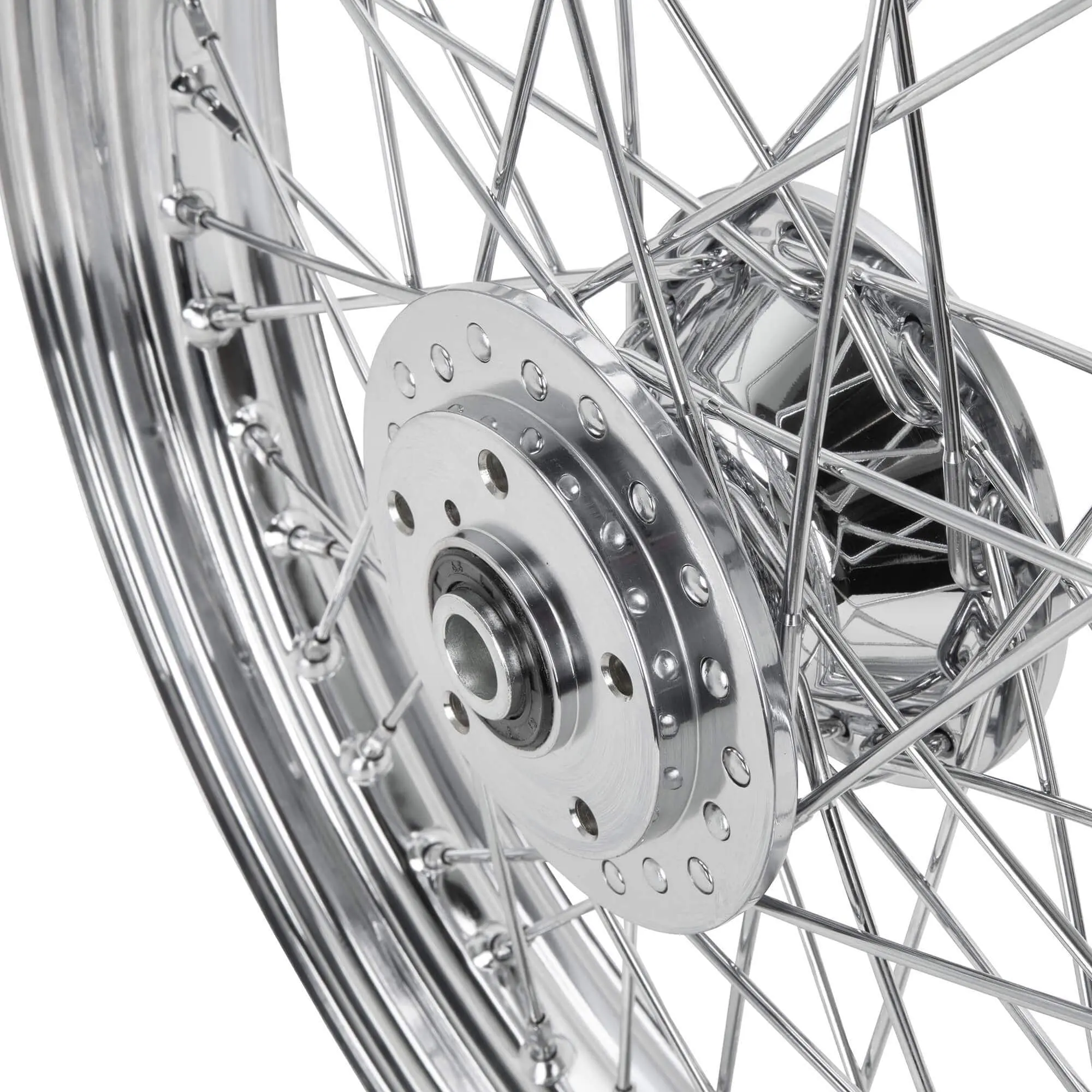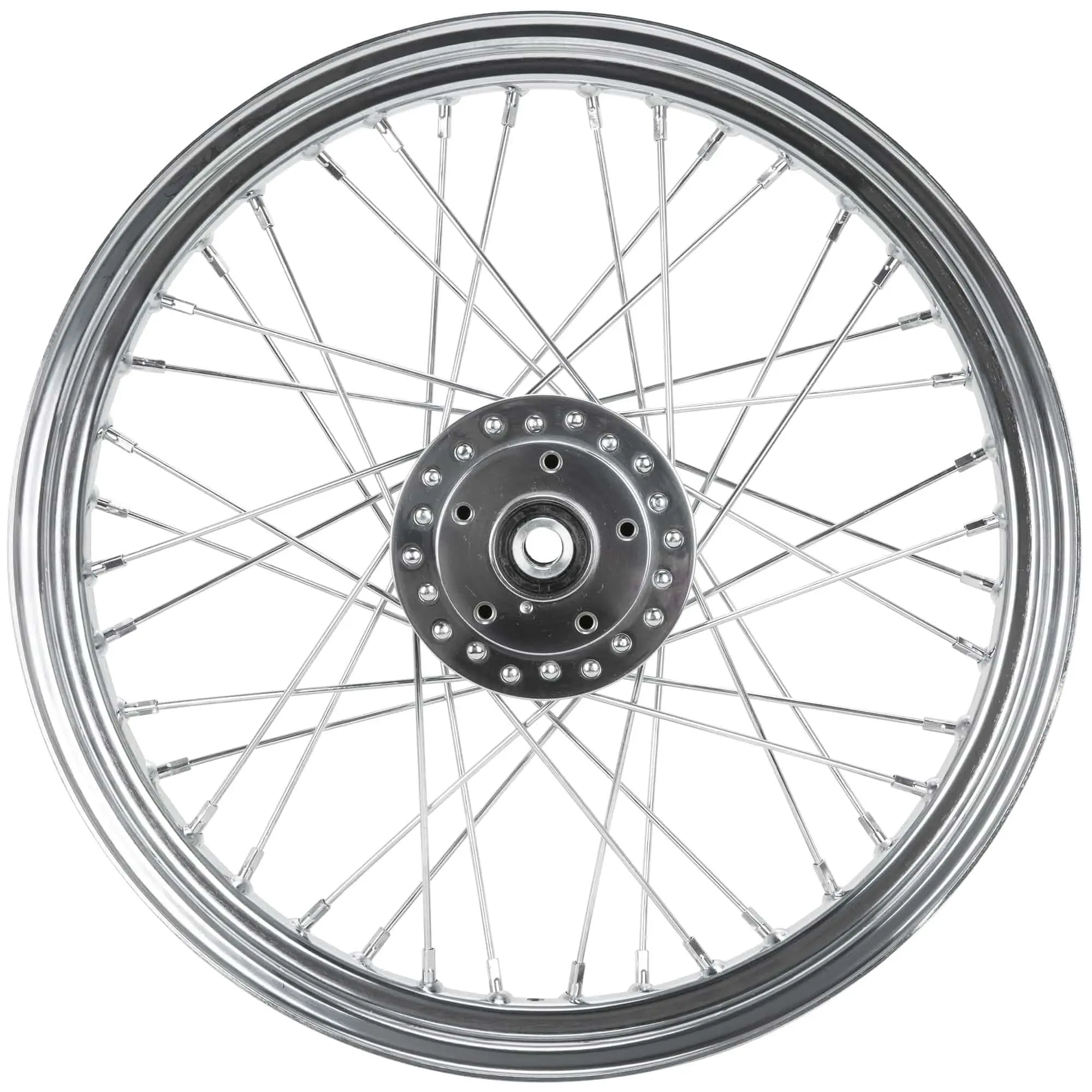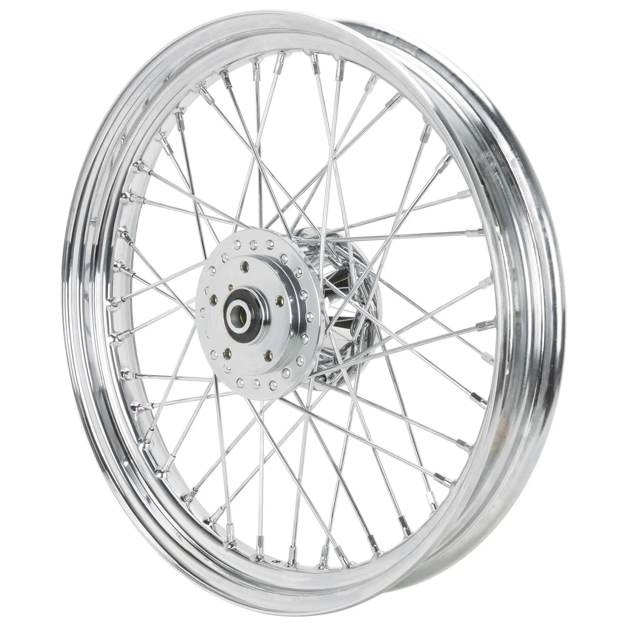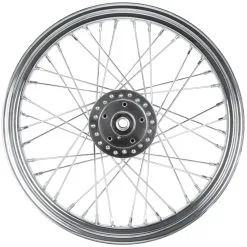 This 19 x 2.5 inch front wheel is laced, trued and ready to run! Can be used on all Harley-Davidson Sportsters and FX models 1984-1999. This is a dual flange wheel. These high-quality wheels feature a Harley-Davidson style drop-center steel rim, chrome spokes and tapered wheel bearings. The tapered, 3/4 inch ID (inside diameter) bearings are the same style as stock H-D for easy future maintenance.