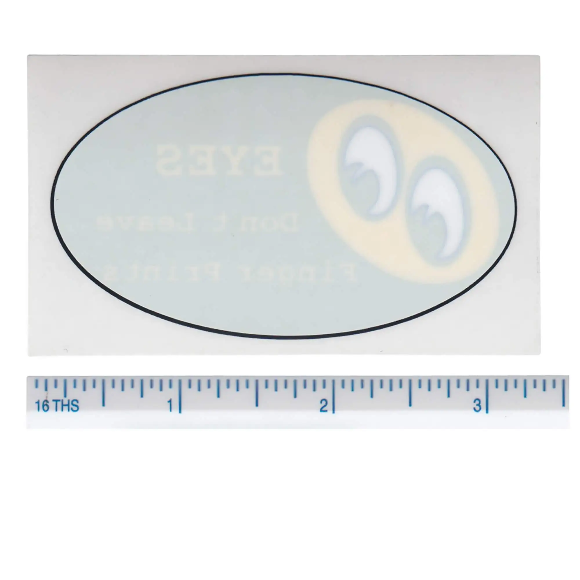 EYES Don’t Leave Fingerprints Sticker. Color printed on a clear background, for inside application to be viewed from outside. Measures approximately: 3″H x 1-3/4″W.