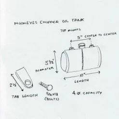 A classic spun aluminum Moon oil tank specifically made for motorcycles. This 4 quart (1 gallon) tank also includes all necessary fittings as well as rubber mounted mild steel weld on tabs to mount it to your frame! A high-quality oil tank that will look beautiful nestled in the loins of your chopper. If this item shows as in stock, then it is on the shelf and ready to ship, no waiting! Made in the USA. This tank comes with a 1-5/16″-12 thread filler cap. There are a variety of