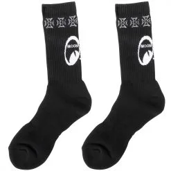 These crew socks feature the MOON Equipped logo and iron cross logos around the calf. Available in White or Black. Keep yourself MOON Equipped, from the bottom up.