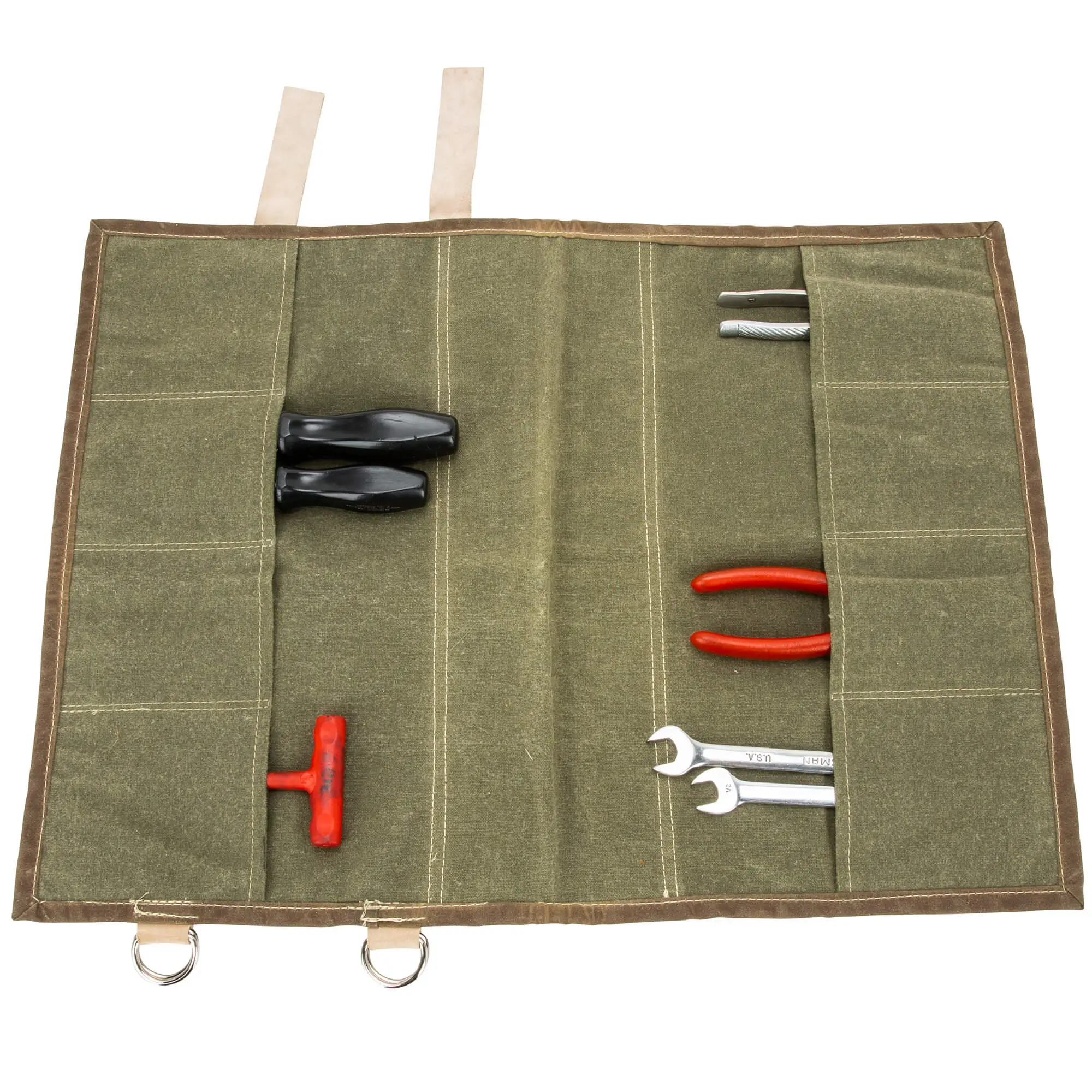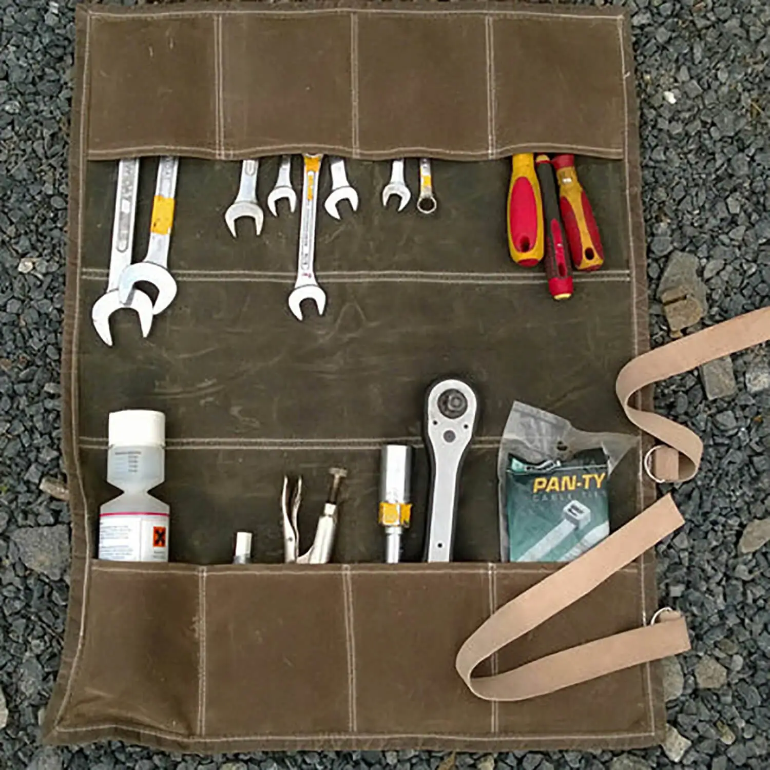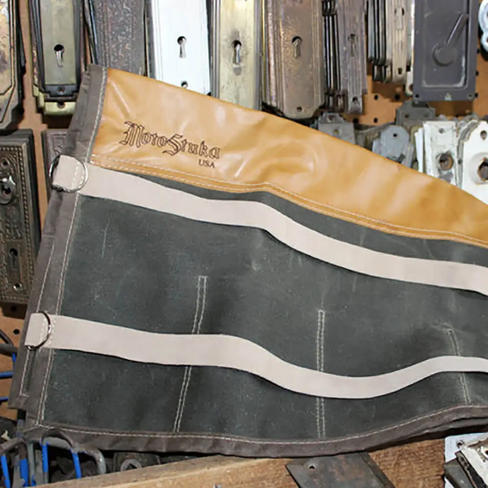 The ME23 Gigante tool roll is a tank! Constructed of the toughest materials, this roll will travel with you to the ends of the Earth! Designed to hold twice as many tools as the JU87, the ME23 is heavy waxed canvas, double hand-stitched with nylon upholstery thread, and reinforced with thick cow hide. This design is all about functional simplicity.Β