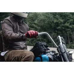 MotoStuka is a company founded on principles rare in today’s throw away culture. Their products represent a dedication to simple, elegant design, high quality materials, and an obsession with time honored craftsmanship. From the “ME23 Gigante” Tool Roll to the “Hog Butcher” shop aprons, MotoStuka accessories are designed using their hearts as well as their heads. Shanks start out as high quality cow hide gloves. At the MotoStuka studio, they undergo the “treatment”. “Shanked” and finished out with waxed thread, they’re then conditioned with a balm made of locally sourced beeswax, natural oils, and distilled tree spirits. This age-old recipe waterproofs the leather and gives it a distressed rich copper finish. The process is dynamic and unpredictable so every glove is unique in color and feel, but ALL get more beautiful with every mile! Shanks are available in Medium, Large, and Extra Large.