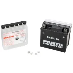 Parts Unlimited is proud to offer a premium-quality, maintenance-free battery at a great low price. The special absorbed-glass mat battery eliminates water loss, permitting the battery to be permanently sealed once it is filled with acid, and the battery is designed to holds charge three times longer than conventional batteries. High capacity and cranking performance, Acid pack included.