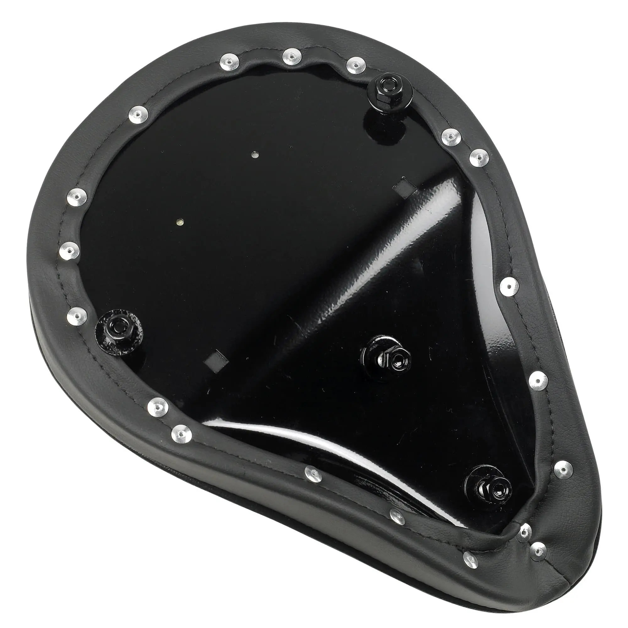 This Traditional solo seat is 9-1/2″ wide by 13″ long, a perfect fit for that lane-splitter your are building. These seats are USA made start-to-finish in Centerville, Indiana at Sully’s Customs. Steel pan and hardware, with black powdercoated finish, 2″ foam and a high-quality naugahyde cover.