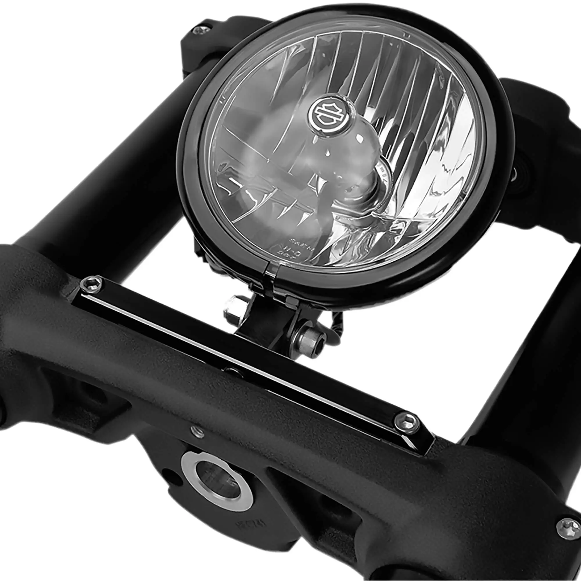 This Headlight Base Bracket is used when fitting a standard style headlight on an FXFB model. The base plate includes hardware to mount base to stock Fatbob trees and one bolt to mount the headlight mount to the base plate. See Additional Information for fitment.