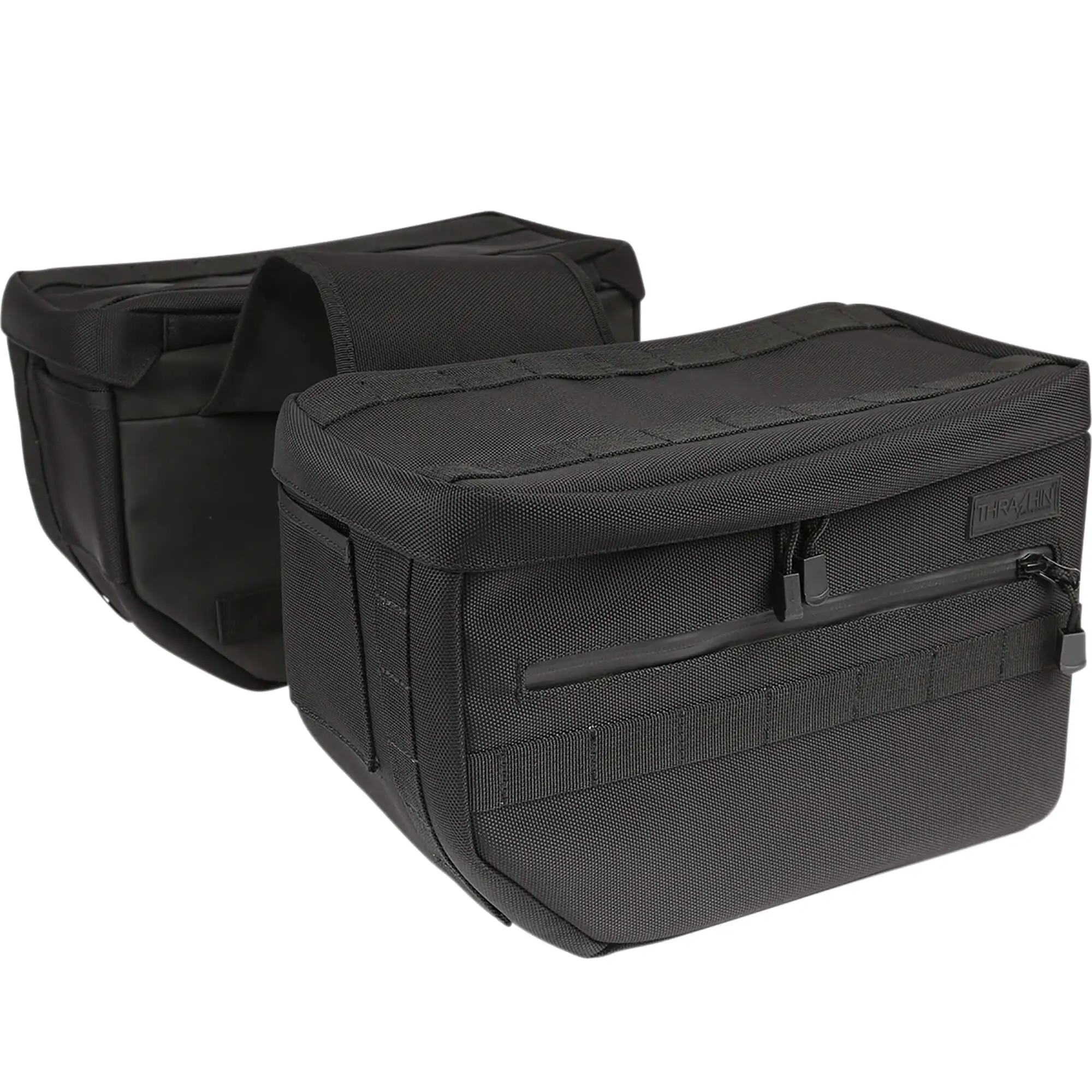 The Escape Saddlebags were designed after the success of Thrashin Supply Co.’s Essential Saddlebags. Not only did they increase the dimensions from 11x8x5 to 13x9x7 to allow for longer trips, they also gave the bag more structure to allow for the extra weight. These bags follow the same throw over design as the Essential Saddlebags but feature a velcro throw over yoke to fit perfectly on all size fenders. They are also including Water Proof Covers with The Escape Saddlebags, with the intention that these bags can go with you anywhere.