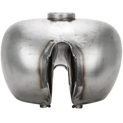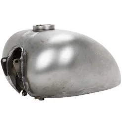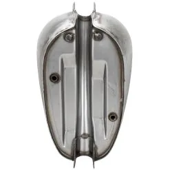This replica Ironhead Roadster gas tank has a right side petcock location, and fuel capacity of 3.5 gallons and is bolt-on for 1952-1978 Harley-Davidson Ironhead Sportsters. The front mounting tab holes to rear mount tab holes measure 21-1/4″ center to center. The fuel opening is 4-1/2″ from the front edge of the tank and 16″ from the rear edge. This gas tank accepts a stock-style